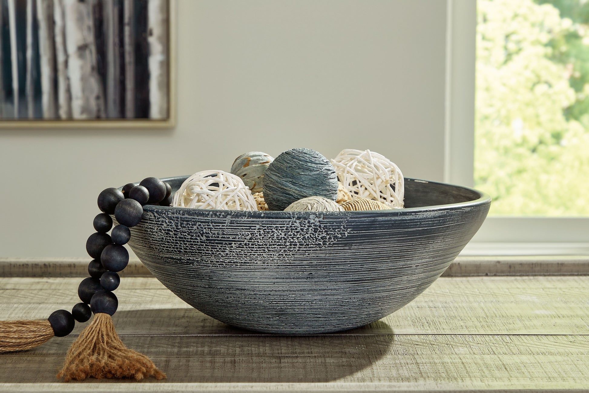 Celebrate the artisanal character of ceramics with this bowl. Its distressed black finish has a time-worn, weathered appeal, offering the look of the past with a modern feel. The bowl's neutral tone makes it a go-to for all seasons, allowing you to stage it solo or dress it up with baubles and filler decor of your choice.