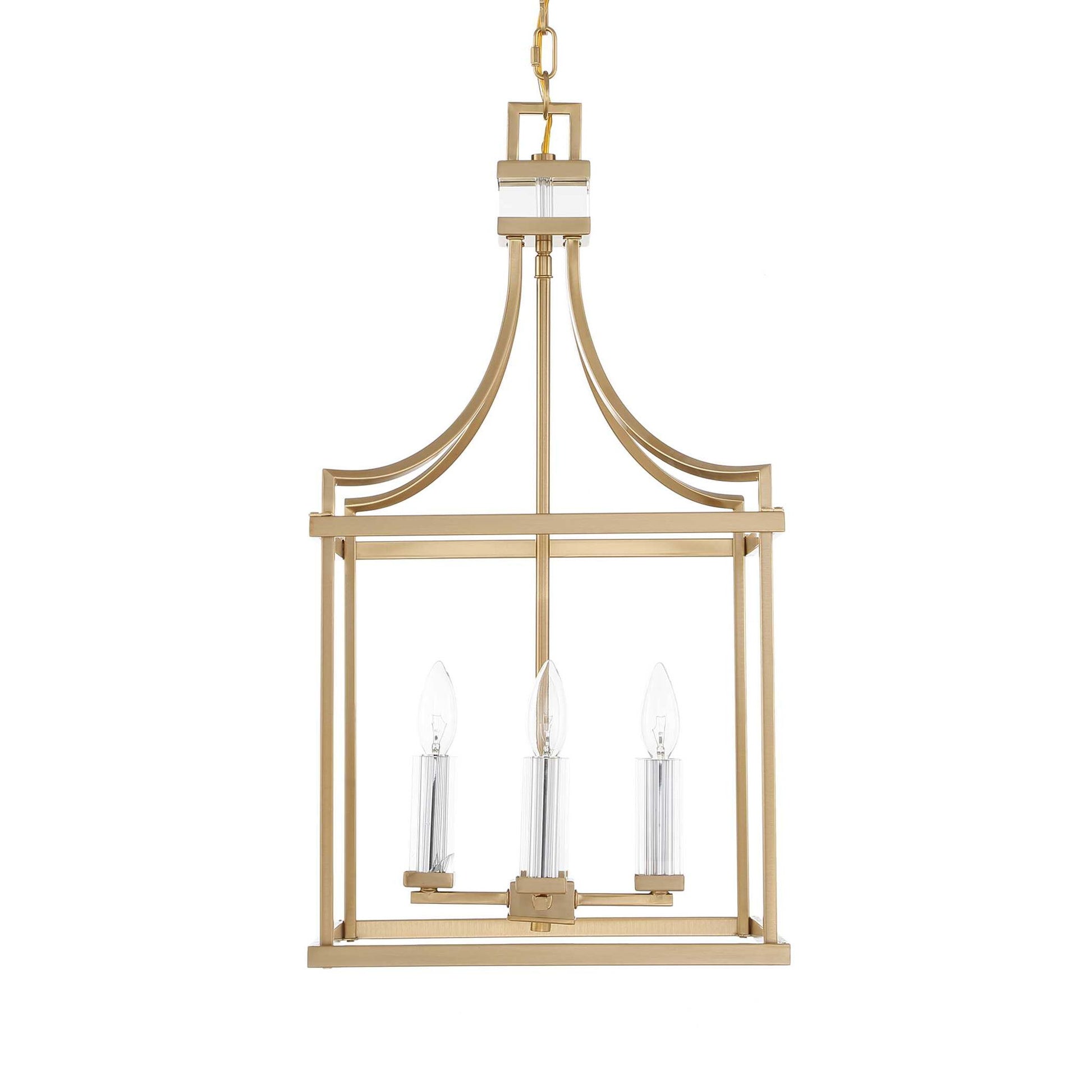Traditional Lantern Shape Dressed Up In A Warm Brass Finish With Crystal Accent Candle Sleeves. 4-60 Watt Max Candelabra Sockets. Bulbs Not Included. Supplied With 15' Wire, 7' Chain For Adjustable Installation.