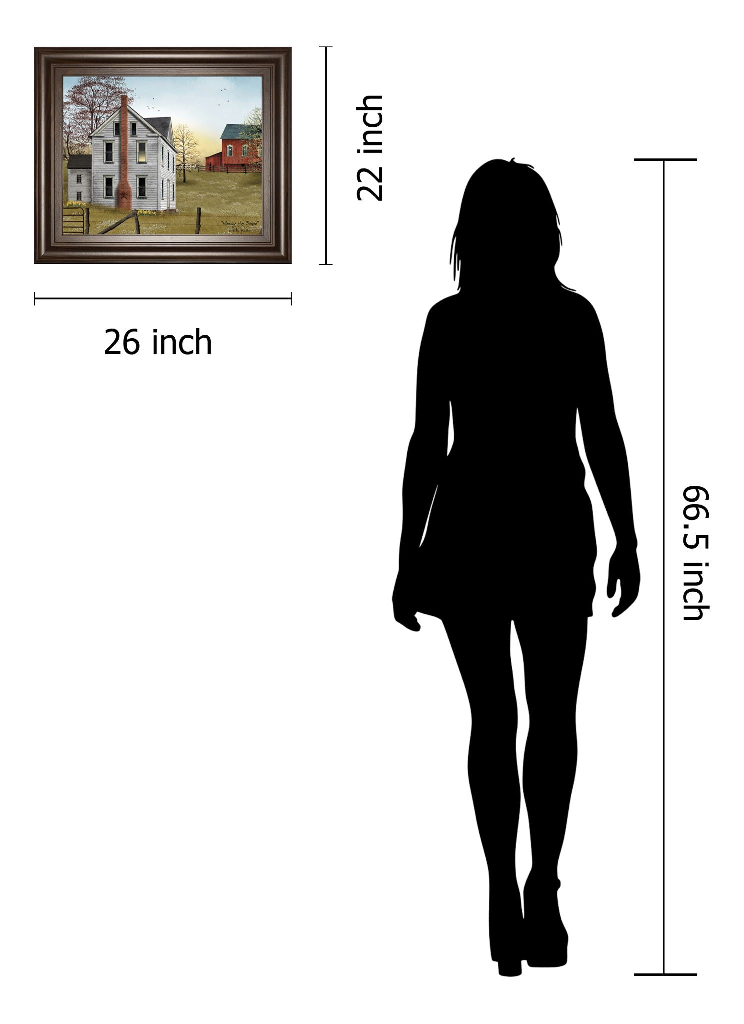 Step into a tranquil countryside morning with this captivating scene of a classic white farmhouse, its tall red brick chimney standing proudly against a soft, awakening sky. The warm cinnamon mocha frame enhances the earthy tones and gentle hues of red, yellow, and green, inviting a sense of peace and nostalgia into your home. Ideal for living rooms, offices, or cozy dens, this traditional graphic art piece brings rustic charm and timeless beauty to any space. Crafted with premium materials and protected by real glass, it arrives ready to hang and inspire quiet moments of reflection.