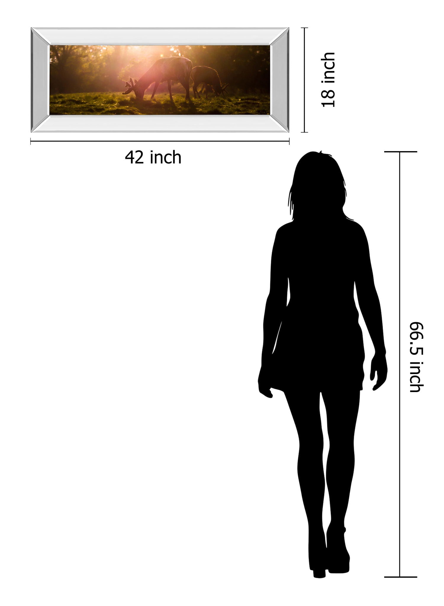 Experience the tranquil charm of dawn with this captivating framed photograph, showcasing two deer grazing quietly in a sunlit meadow. The warm golden light filters through the trees, casting a peaceful glow that invites calm and reflection into any room. Encased in a sleek mirrored frame, this piece not only enhances the depth and vibrancy of the scene but also adds a touch of contemporary elegance. Perfect for living rooms, offices, or dens, it combines expert craftsmanship with premium materials, including crystal-clear glass to protect and highlight the intricate details. Let this serene moment of nature inspire a sense of calm and connection every day.