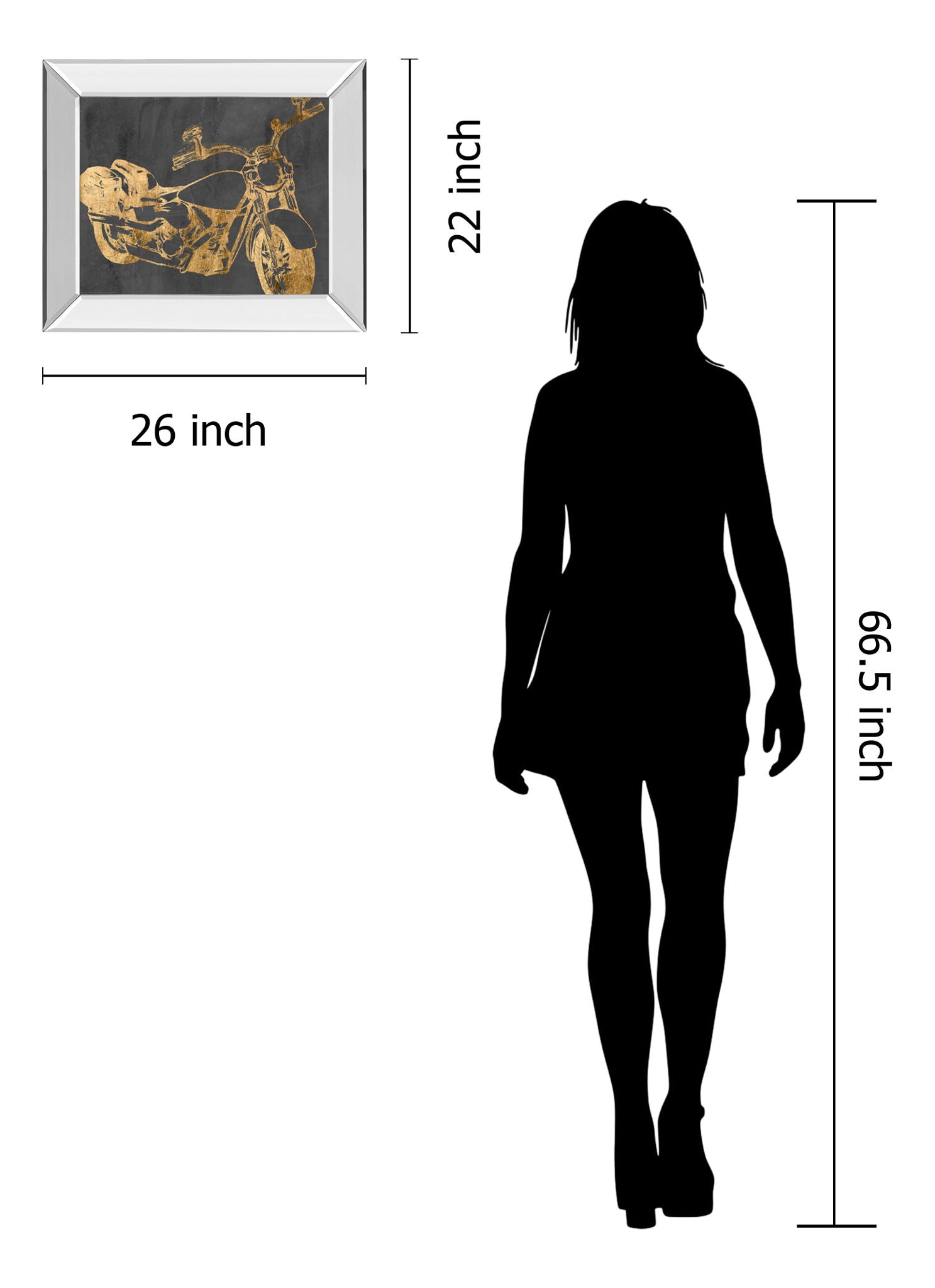 Immerse yourself in the bold spirit of the open road with this captivating piece that blends classic motorcycle imagery with modern artistry. The rich gold tones shimmer against a deep charcoal backdrop, creating a striking contrast that commands attention. Encased in a sleek mirrored frame, this artwork not only reflects light but also elevates any space with its contemporary edge. Perfect for living rooms, offices, or game rooms, it celebrates the thrill of adventure and the timeless allure of the motorcycle culture, crafted with premium materials to ensure vibrant detail and lasting beauty.