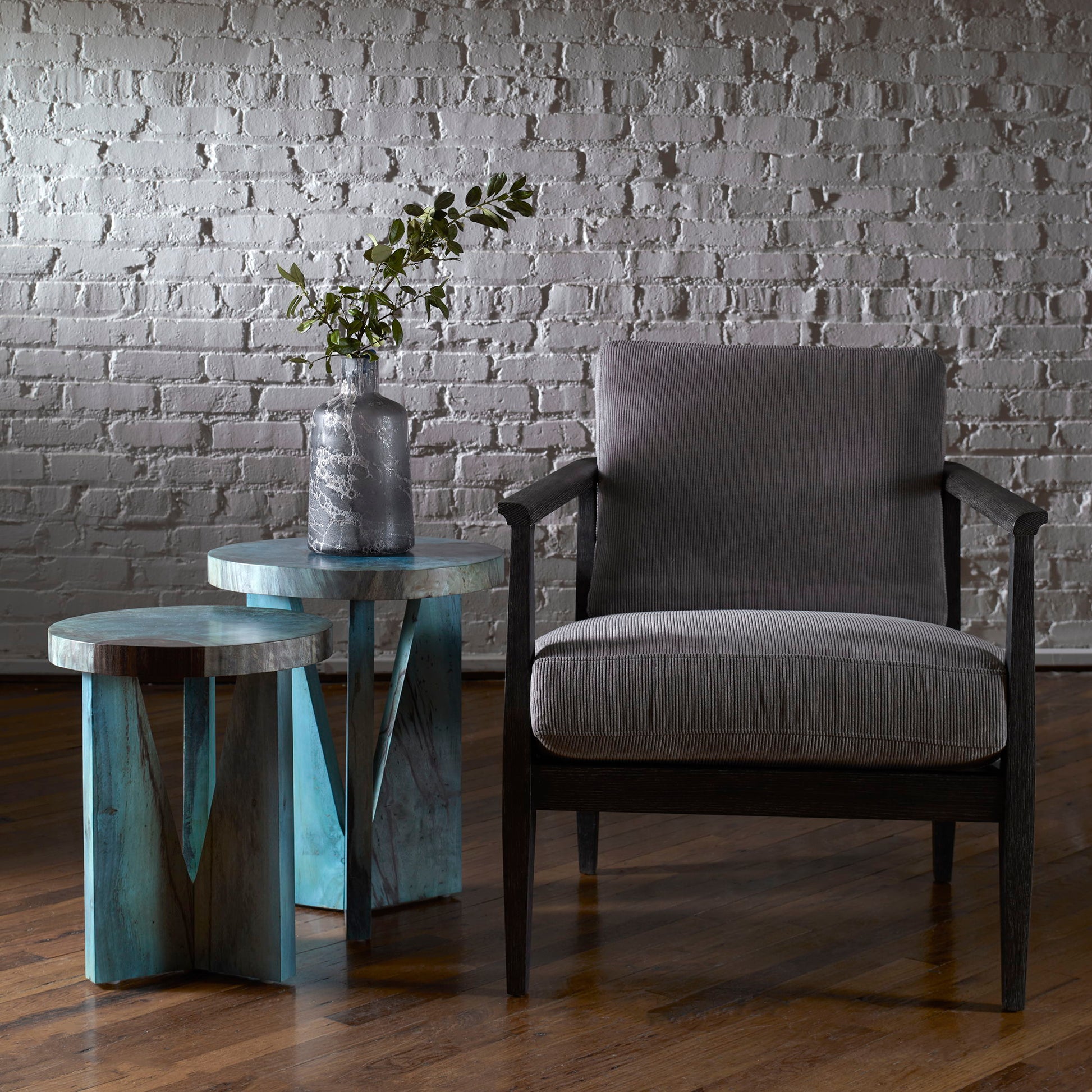 Made From Solid Tamarind Wood, This Set Of Two Nesting Tables Features Strong Angular Lines With Beautiful Spalting In A Rich Blue-green Stain. Solid Wood Will Continue To Move With Temperature And Humidity Changes, Which Can Result In Cracks And Uneven Surfaces, Adding To Its Authenticity And Character. Sizes: Sm-16x19x16, Lg-18x22x18