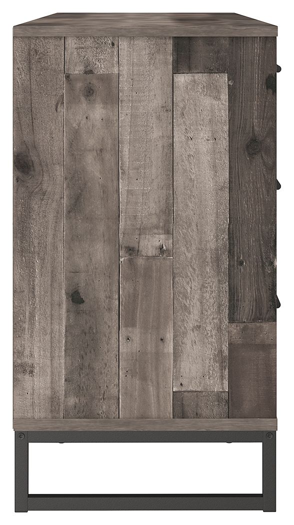 Streamlined design and a stunning two-tone finish come together in one simply extraordinary piece. This dresser is sure to impress with six smooth-operating drawers, canted metal legs and rich brown finish over replicated pine grain texture. Its mid-century style is a nod to the past, while the updated finish keeps it solidly in the present.