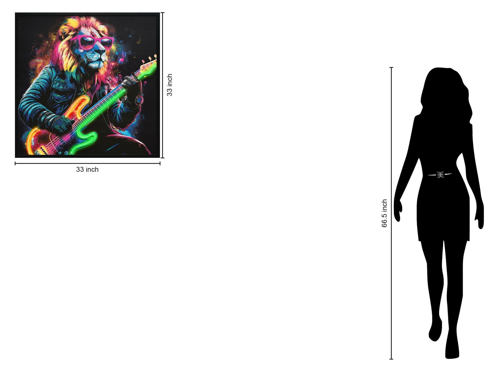 Experience the electrifying energy of 'Neon Groove II,' a stunning neon wall art piece featuring a lion rocking out with a guitar. This hand-embellished acrylic masterpiece is framed to enhance its vivid colors and dynamic design. Perfect for music lovers and art enthusiasts alike, it adds a bold statement to any room.