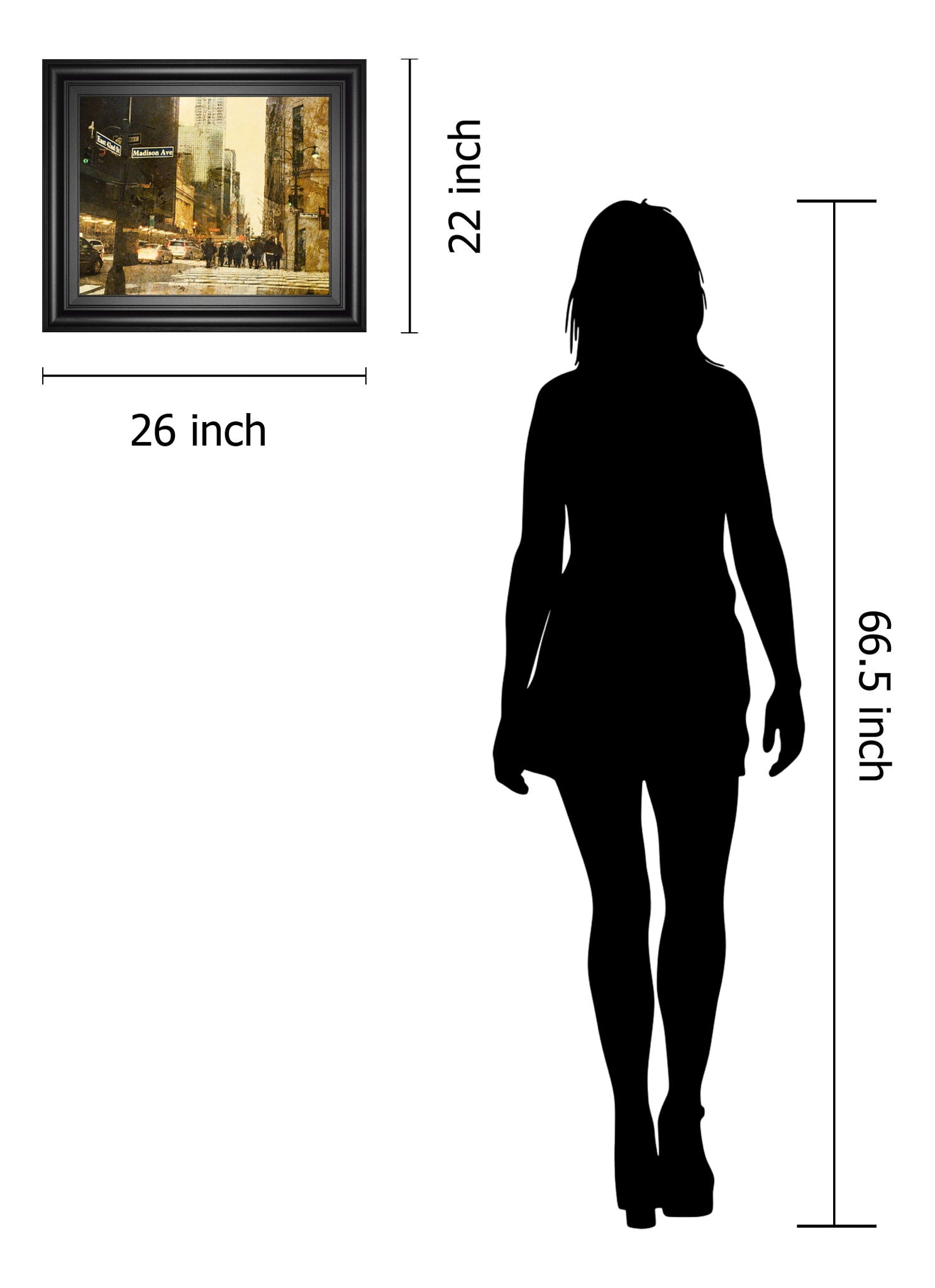 Step into the heart of a vibrant city with this captivating depiction of a bustling urban intersection. Rendered in warm sepia tones, the scene captures the dynamic energy of pedestrians and traffic weaving through the iconic streets of East 42nd and Madison Avenue. The textured finish adds a nostalgic touch, while the sleek midnight aura frame lends a sophisticated contrast that enhances the artwork’s depth. Perfectly sized for living rooms or offices, this framed piece invites you to experience the rhythm of city life, blending timeless charm with modern style for a striking visual statement.