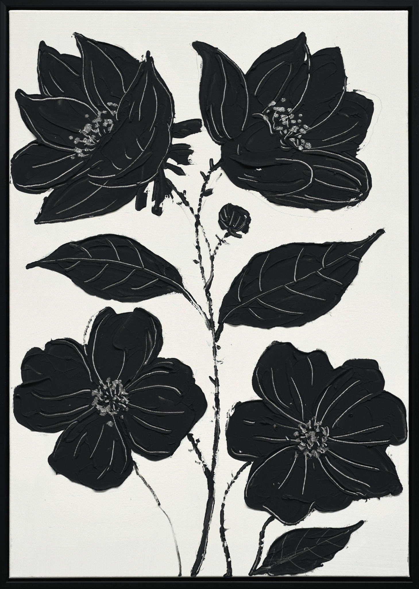 Experience the elegant allure of 'Nocturnal Blooms,' a striking acrylic painting that captures the beauty of dark florals against a light backdrop. Perfect for adding a touch of sophistication to any room, this hand-painted piece is framed to enhance its dramatic impact.