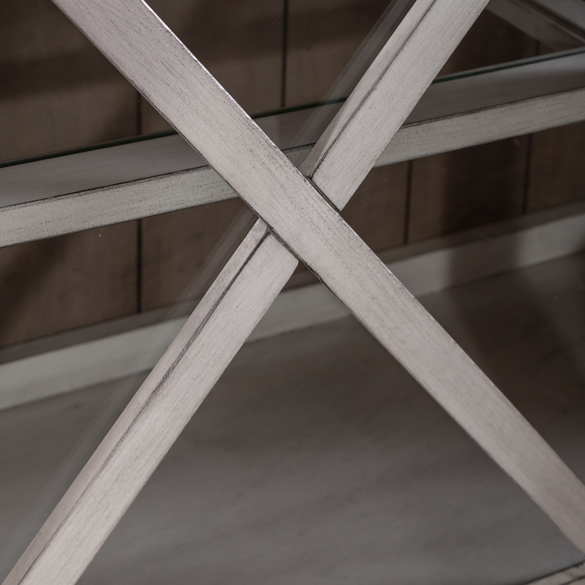 The tranquility of the sea and the charm of a cozy cottage harmonize in Ocean Isle. Ocean Isle creates incomparable style by combining coastal and cottage elements. Authentic pine veneers in weathered gray work well with the antique white finish to create a two-tone natural look. This collection features high-low planked panels as well as X motif accents highlighted by satin nickel cup pull hardware.