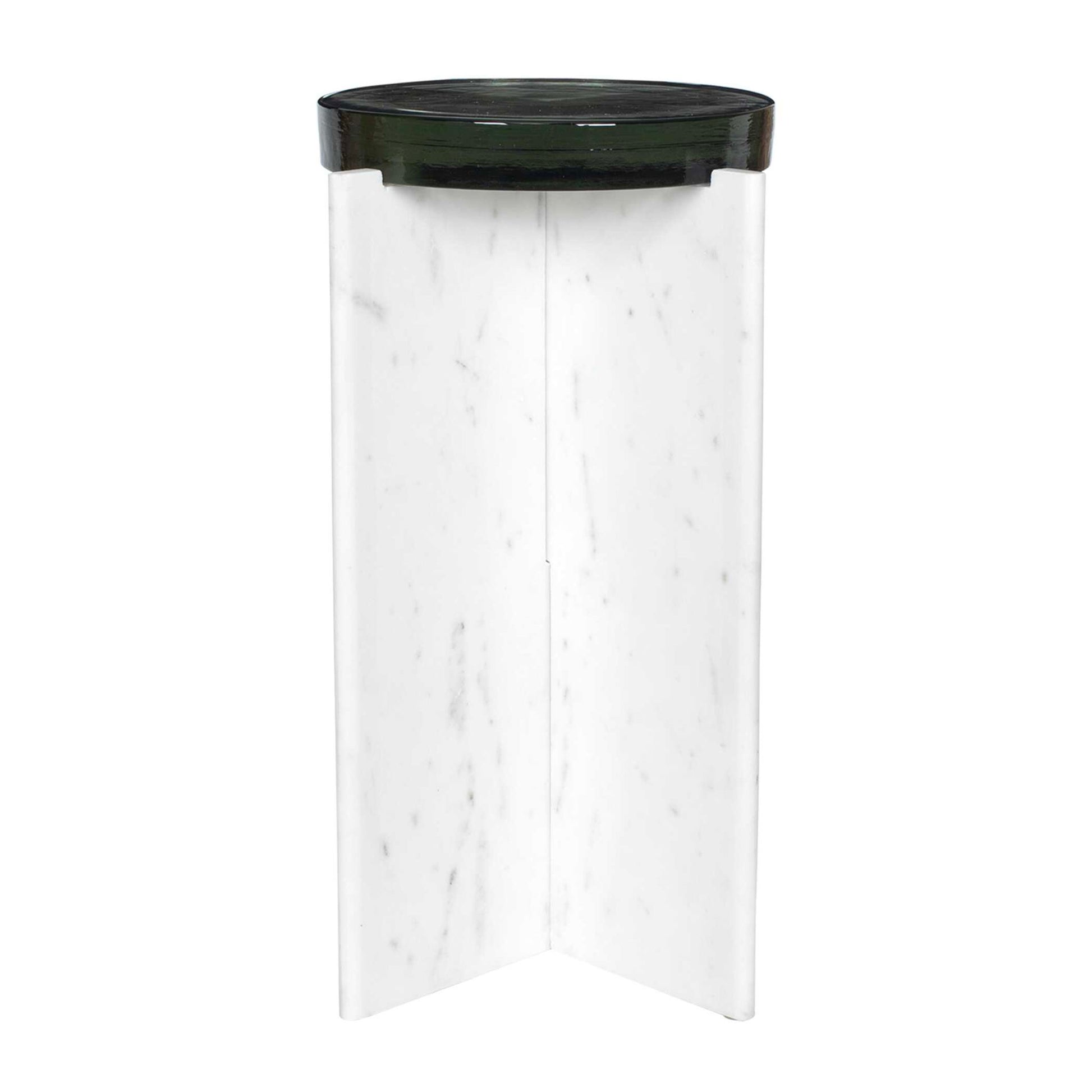 This Luxurious Accent Table Boasts A Captivating Design With An X-shaped White Marble Base With Gray Veining And A Thick Cast Glass Top. Due To The Nature Of Natural Stone, Every Piece Will Vary Slightly Ensuring Yours Is Unique. Suitable For Both Indoor And Outdoor Use.