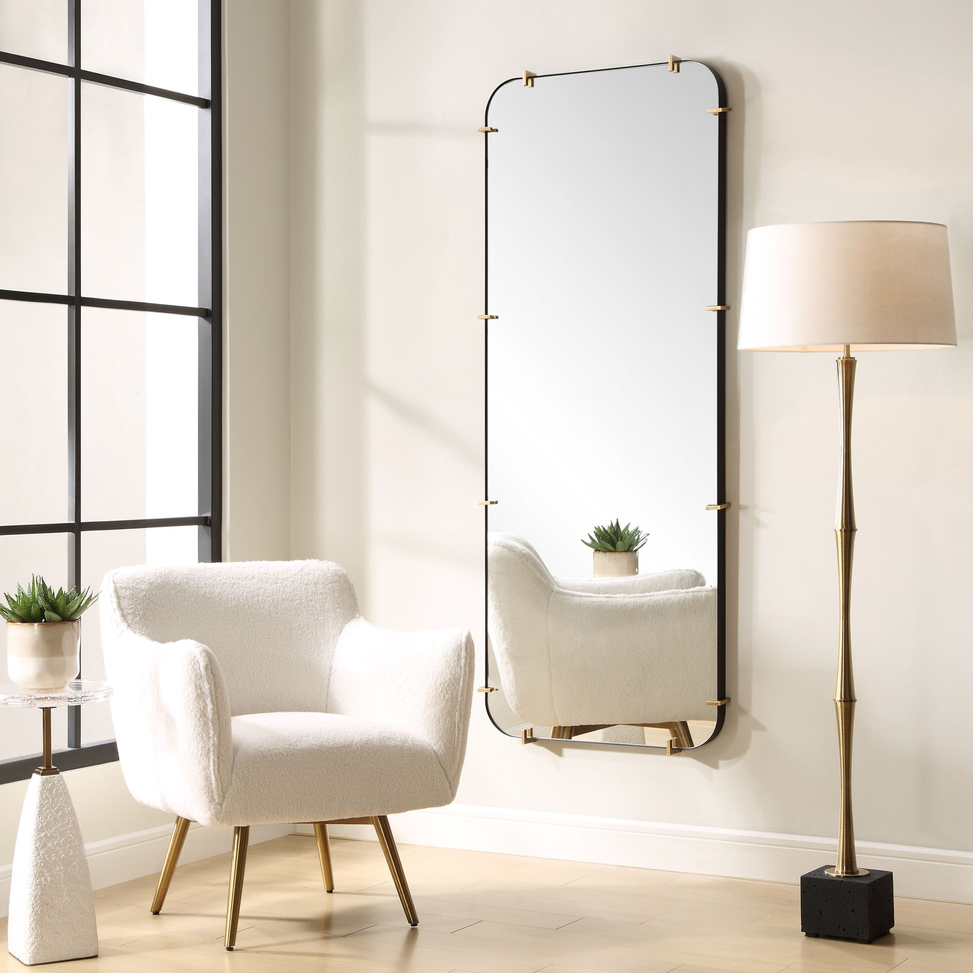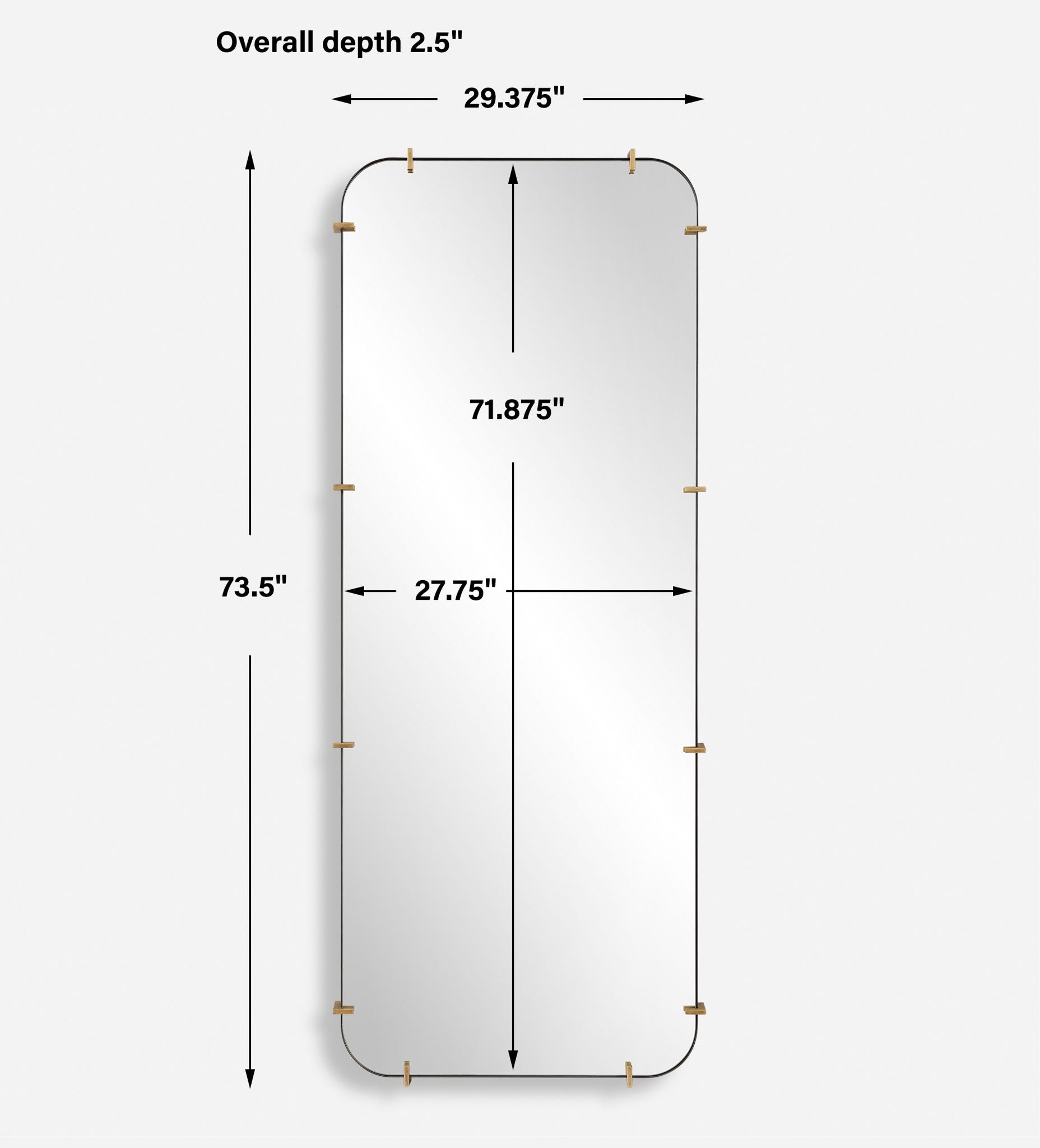 The Pali Mirror Successfully Pairs Contemporary And Industrial Styles With A Black Iron Strap Frame Accented By Lightly Antiqued Brushed Gold Details, Surrounding A Floating Polished Edge Mirror. May Be Hung Horizontal Or Vertical.