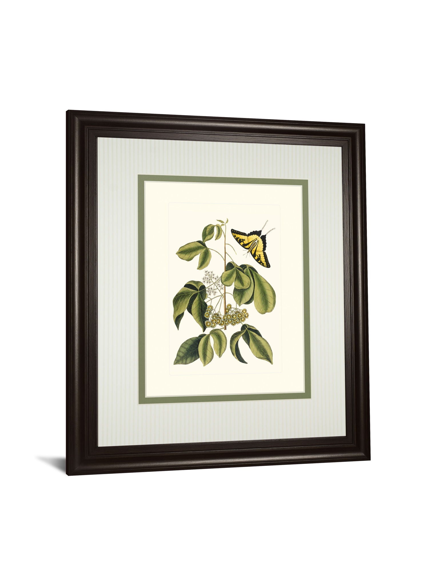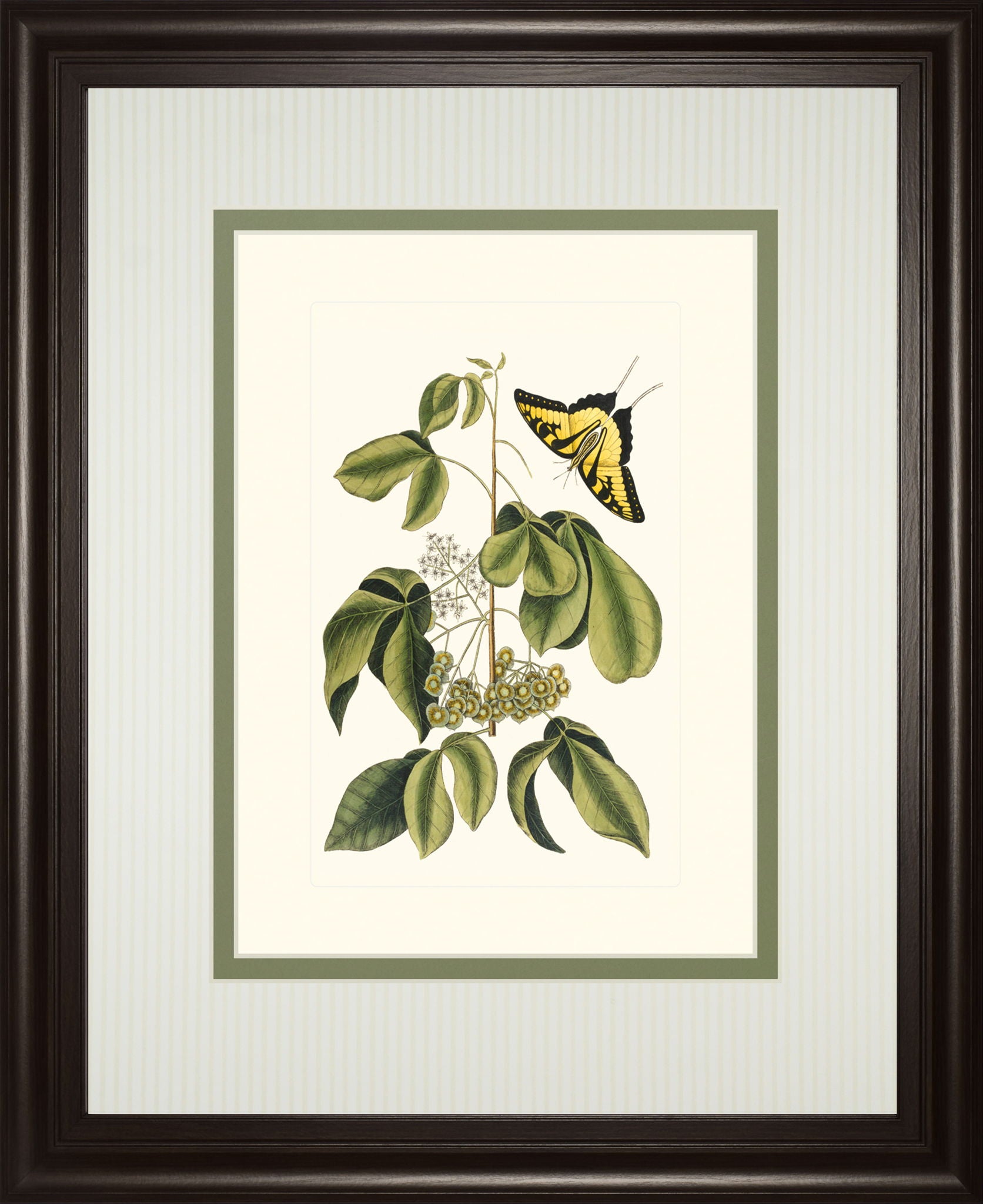 Step into a serene garden with this exquisite botanical wall art that captures the delicate dance of nature. Featuring a vibrant yellow and black butterfly poised gracefully among lush green leaves and subtle blossoms, this piece evokes a timeless sense of calm and elegance. The soft green and cream double matting enhances the intricate details, while the rich dark chocolate frame with real glass offers a polished, gallery-quality finish. Perfectly suited for living rooms, bedrooms, or offices, this artwork invites a peaceful, sophisticated ambiance into any space, celebrating the quiet beauty found in nature’s smallest moments.