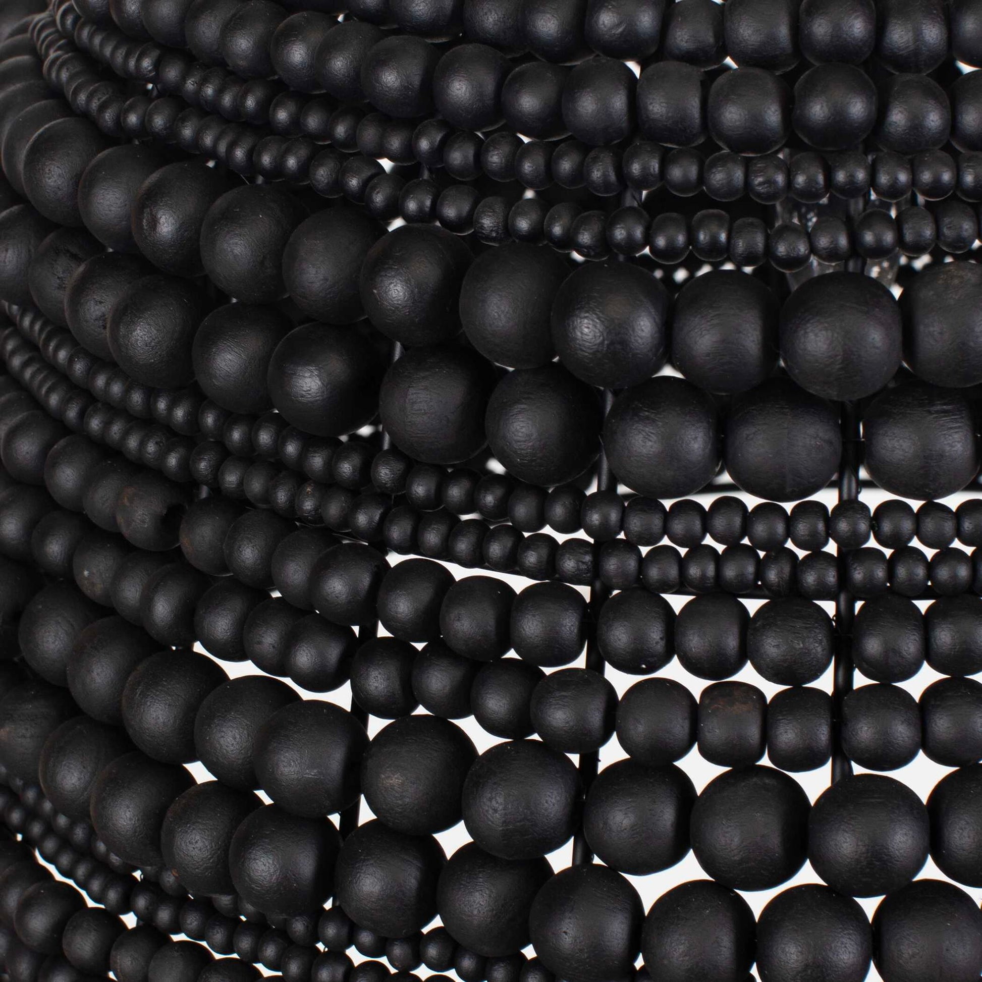 Distinguished Rich Black Wooden Beads In Various Sizes Make Up This Statement Pendant With Matte Black Details. 1-60 Watt Max Edison Socket. Bulbs Not Included. Supplied With 15' Wire, 3-12" Stems And 1-6" Stem For Adjustable Installation.