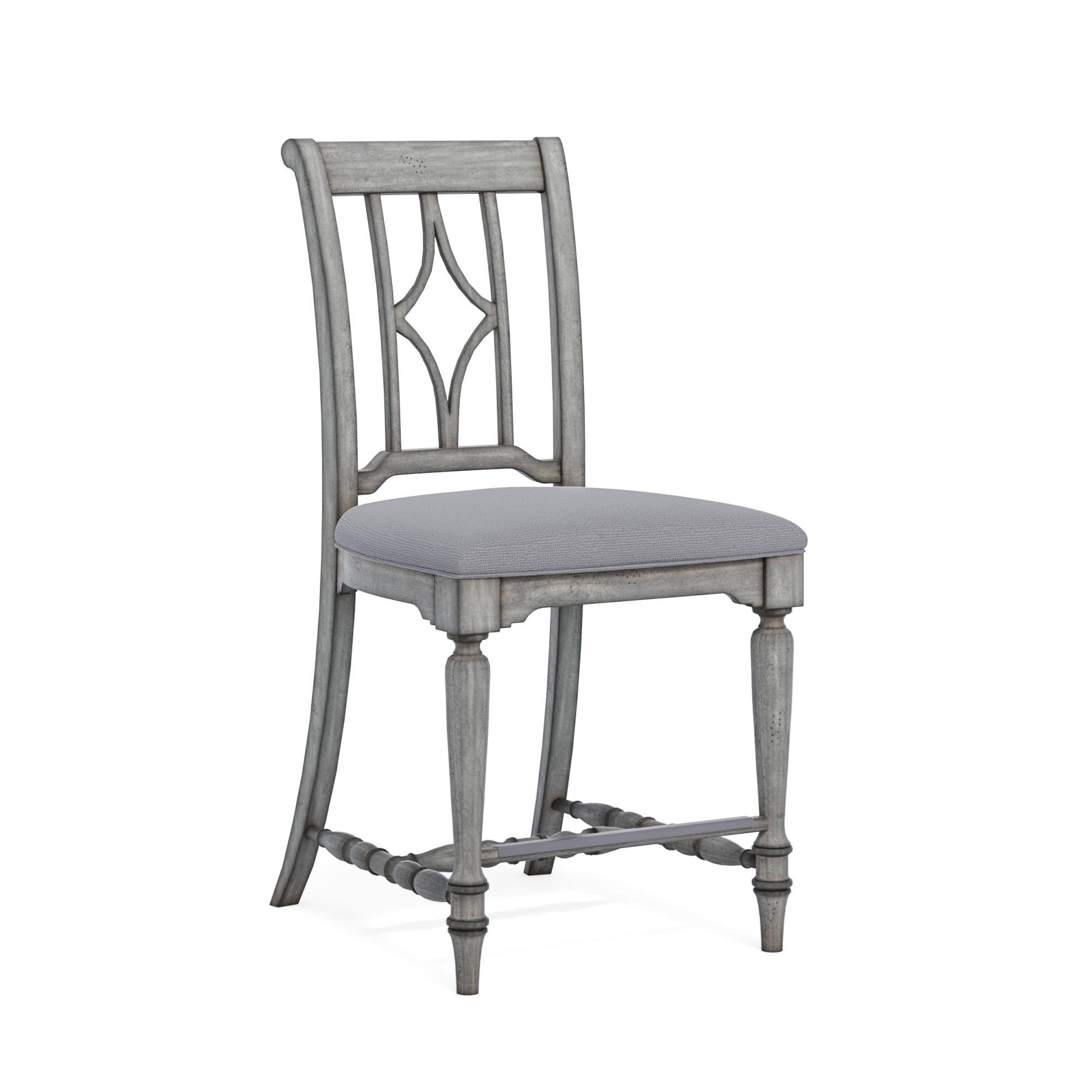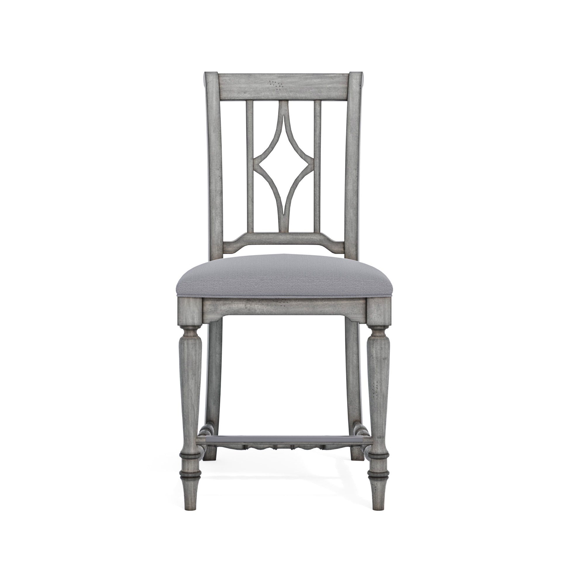 Designed to complement our Plymouth dining tables with a coordinating cottage look, this charming dining chair features an appealing open back design with a diamond-shaped detail, intricately carved trestles and turned legs for added vintage character. Available in a distressed medium brown finish, each chair is upholstered in a durable and cleanable coordinating fabric, providing comfort for long periods of sitting.