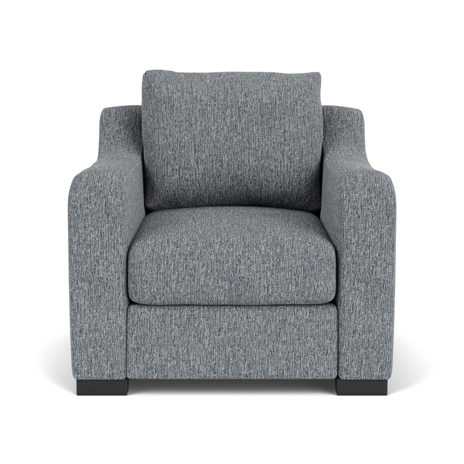 Cozy and casual yet stylishly relevant, the Quinn chair exudes an effortless vibe that harmonizes with any decor. Gently sloping track arms sit atop black recessed legs to make a statement, while plush, sink-in back and seat cushions ensure that comfort never gets compromised. Create the perfect, relaxed look for your living space with your choice of upholstery fabrics, including performance and sustainable options.