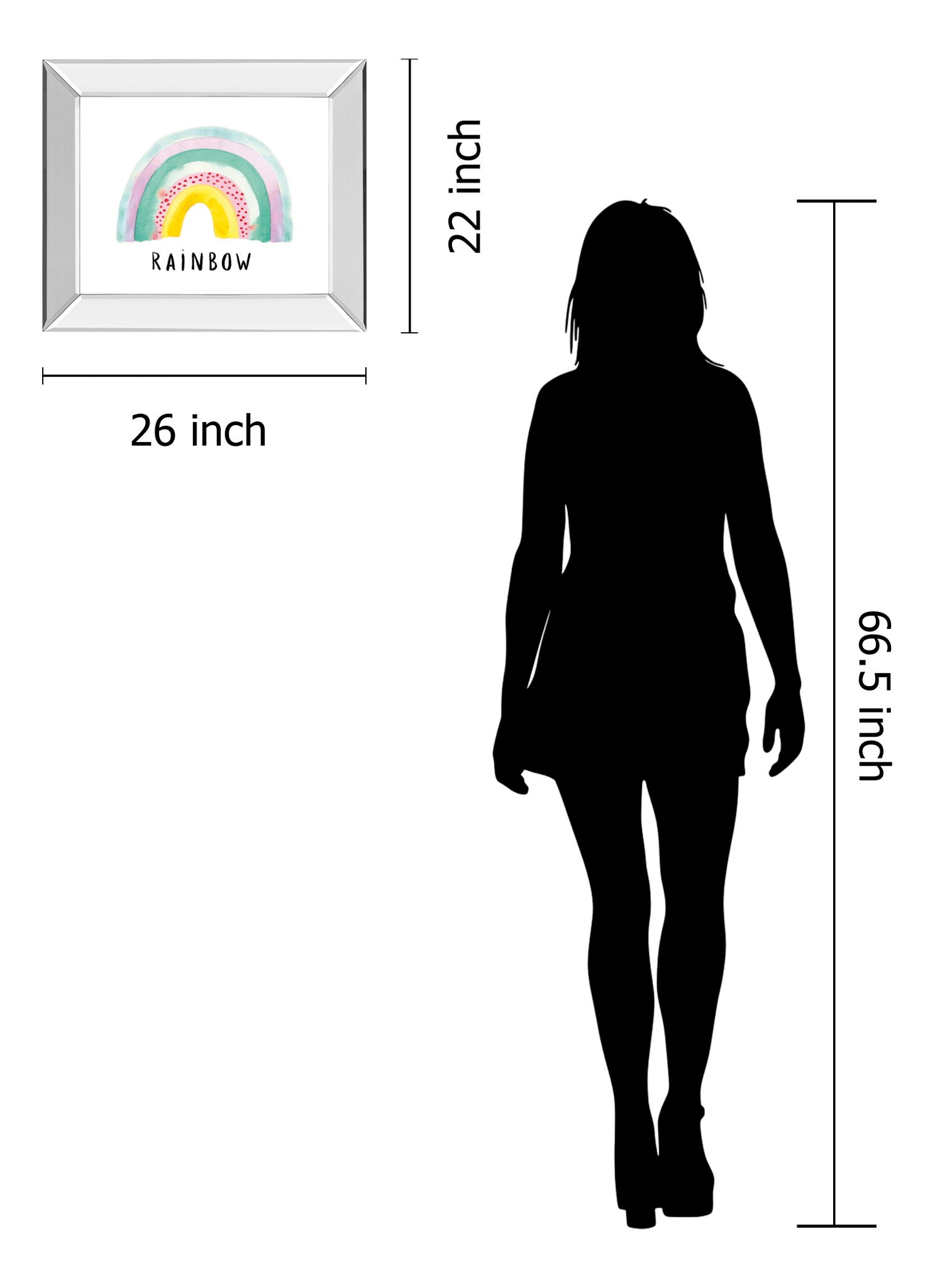 Add a touch of whimsy and brightness to any child's room with this delightful Rainbow Joy framed wall art. Featuring a hand-painted rainbow in soft pastel colors accented with playful red dots, this piece captures the essence of childhood wonder and imagination. The sleek 2.5-inch mirrored frame adds a modern reflective element that enhances the artwork’s vibrancy and depth, while premium real glass protects the print. Perfectly sized at 22 by 26 inches, this horizontal framed print is ready to hang and makes a charming addition to nurseries, playrooms, or kids' rooms, inspiring joy and creativity every day.