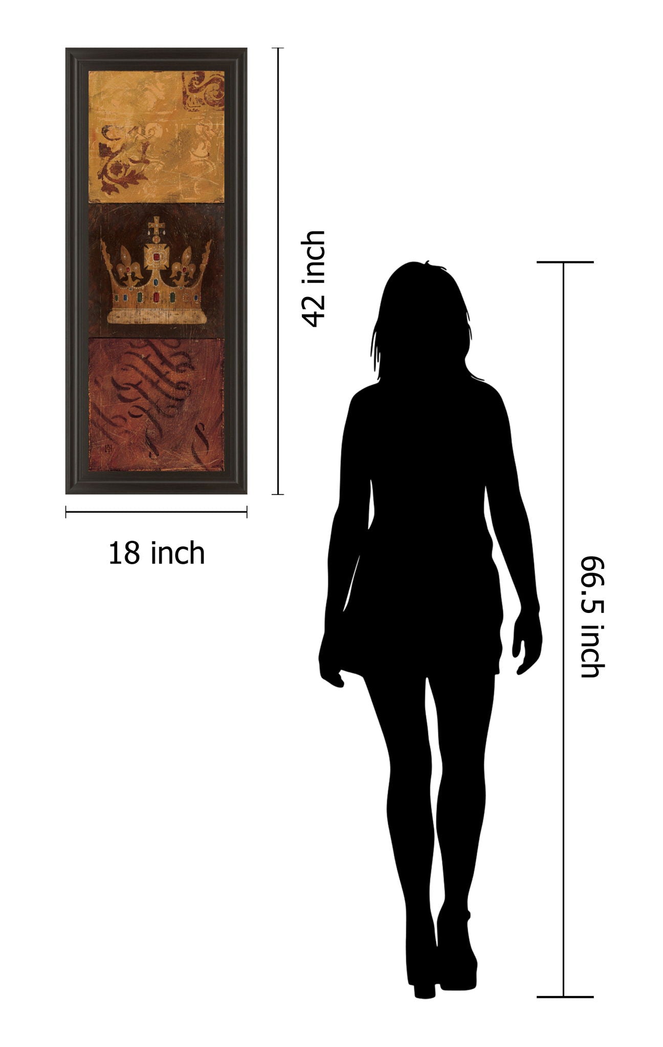 This striking vertical wall art piece invites you into a world of timeless elegance and rich symbolism. Featuring a majestic crown adorned with jewel-like accents, the artwork is set against a warm palette of gold, brown, and deep red tones that evoke a sense of nobility and classic sophistication. The dark chocolate frame enhances the depth and texture of the abstract motifs, making it a perfect statement for living rooms, offices, or studies. Crafted with premium materials including real glass and MDF, this piece offers durability alongside refined style. Ready to hang and proudly made in the USA, it transforms any space with its regal charm and contemporary allure.