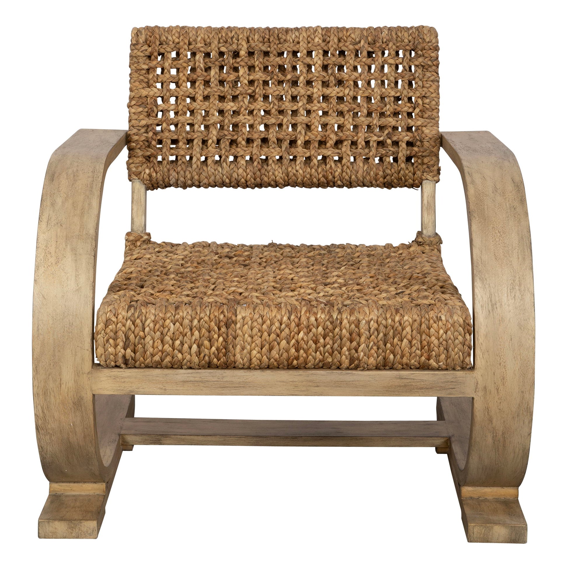 A Modern Bohemian Accent, Featuring A Natural Woven Water Hyacinth Seat On A Curved Solid Wood Frame Giving Flexible Movement, Layered In A Mango Veneer With A Smooth Weathered Driftwood Gray Stain.