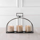 Taking Cues From Moroccan Style, This Candleholder Is Finished In Dark Bronze With Gold Rub-through Details And A Textured Glass Hurricane. Three, White 3"x 3" Candle Is Included.