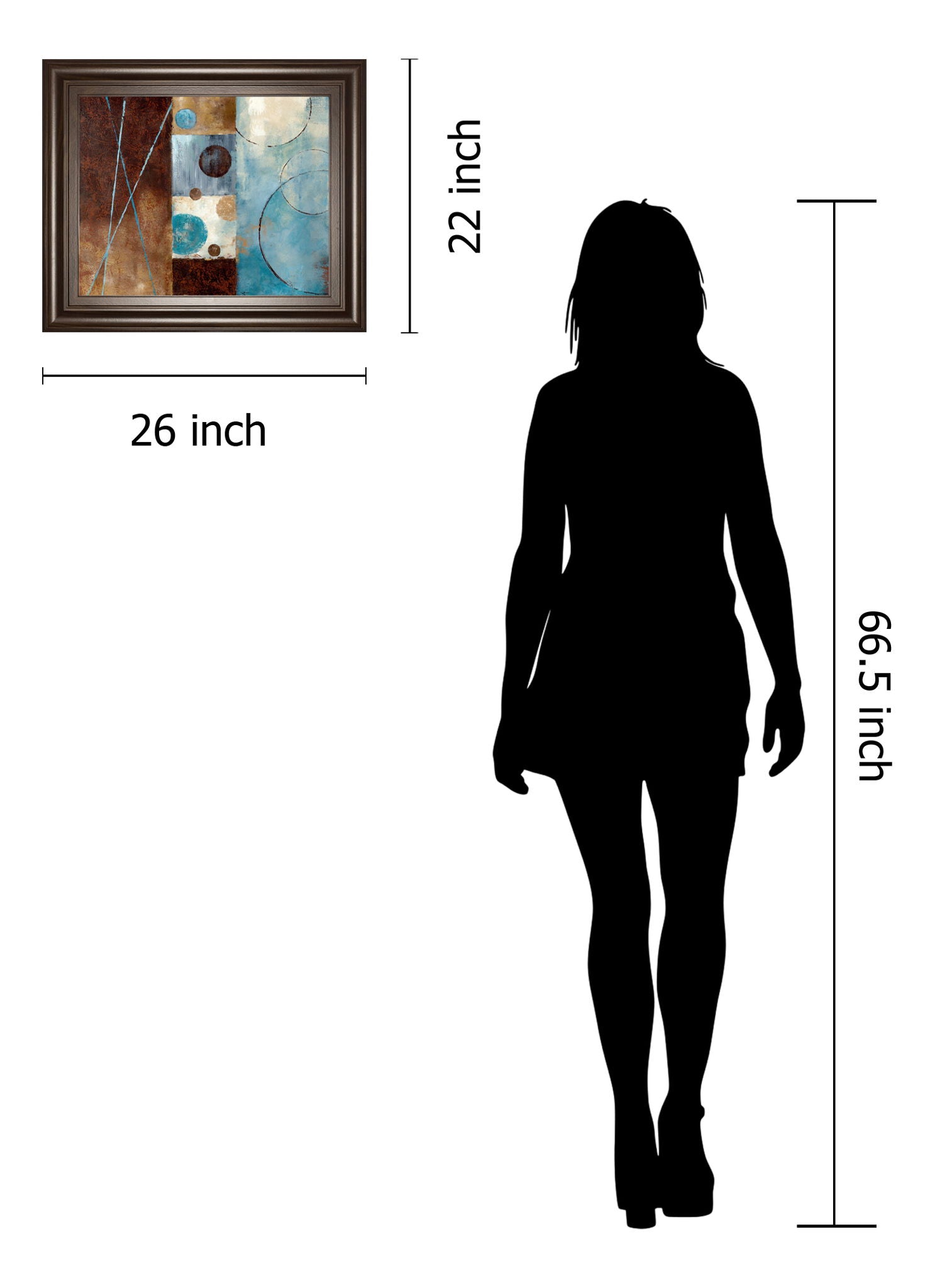Step into a world where earthy cinnamon mocha hues meet serene blues in a captivating abstract dance. This framed wall art features textured circles and intersecting lines that evoke a sense of movement and balance, inviting calm and sophistication into any living room or office. Encased in a wide, elegant cinnamon mocha frame and protected by premium glass, this mixed media piece is crafted with expert care in the USA, making it a timeless statement for your space.