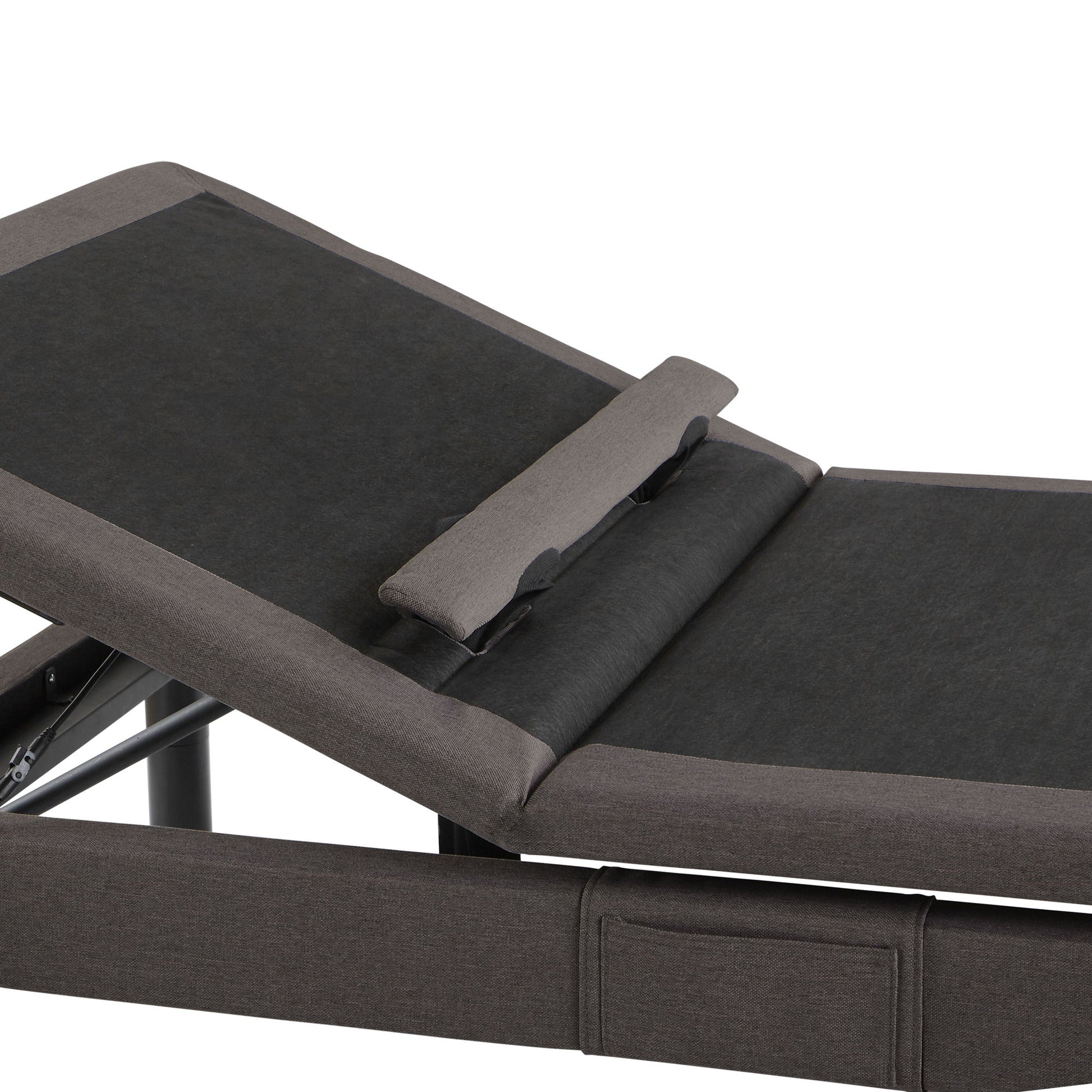 The pinnacle of relaxation and luxury, the S755 Adjustable Bed Base gives you everything you need for a great night’s sleep. Find the perfect resting position with the basic adjustable head and foot panels plus head tilt and lumbar support. The Reach Assist™ feature pulls the bed back toward the wall as you incline for easy access to your nightstand. Built-in Bluetooth® connectivity makes it easy to customize your sleep experience with the MALOUF® Base app (Android and iOS). Additional features include 5 preset positions (Zero Gravity, Anti-Snore, Lounge, TV, and Flat) and six programmable positions that can be customized and saved to match your personal preference. The luxurious massage feature gives you four types, three intensities, and three time settings. Our wireless LED backlit remote control is motion activated so you can simply pick up the remote to light up the buttons. And the underbed LED lights cast a warm glow bright enough for you to see, but soft enough so you stay relaxed. This base also includes a backup battery to power your base in the event of a power outage. To top it off, the sleek, lined-inspired upholstered frame in Stone looks great on its own or fits into most existing bed frames. Since it’s true zero clearance, it can sit directly on foundations, platform bases, slat beds, or the ground.
