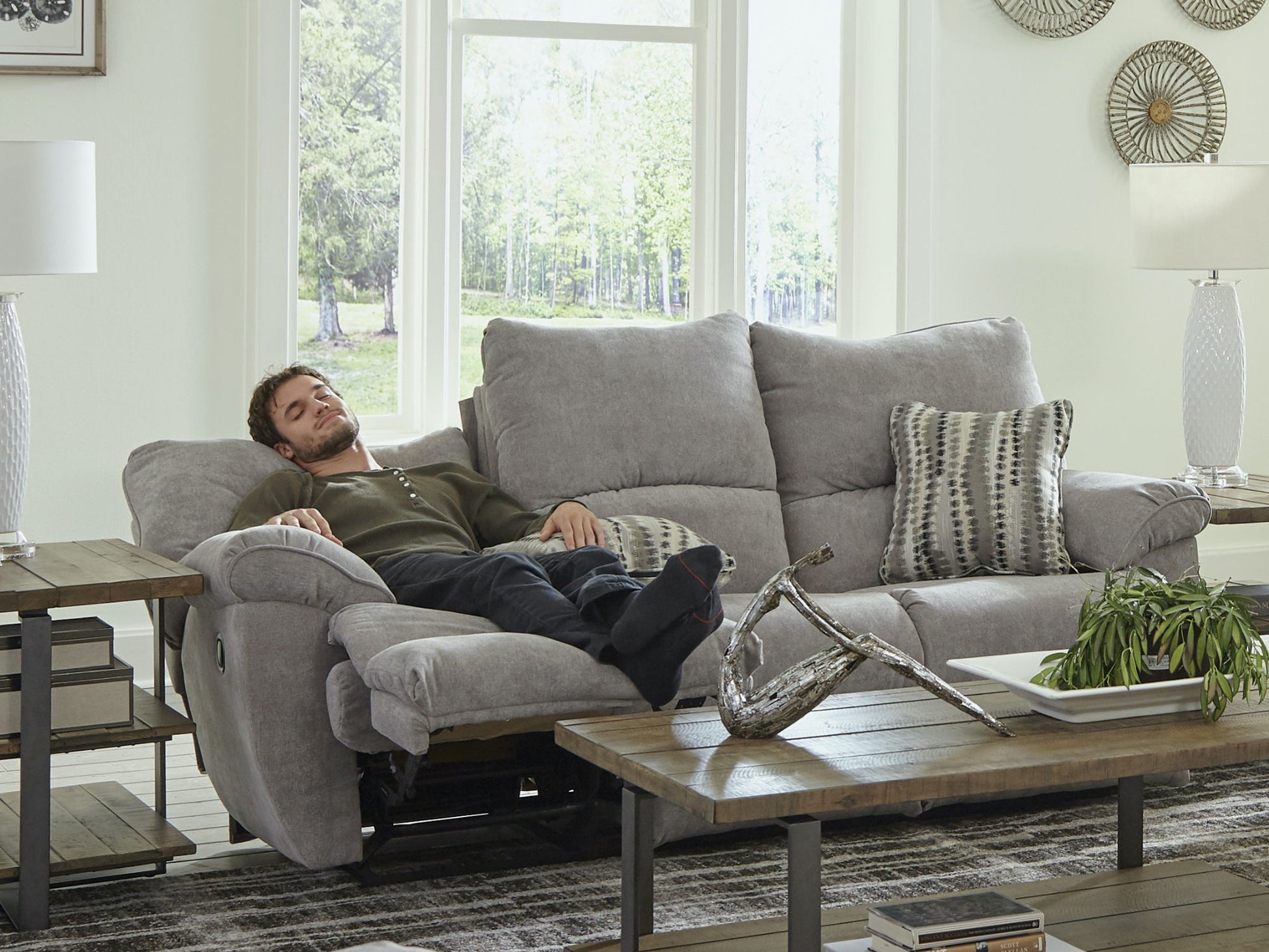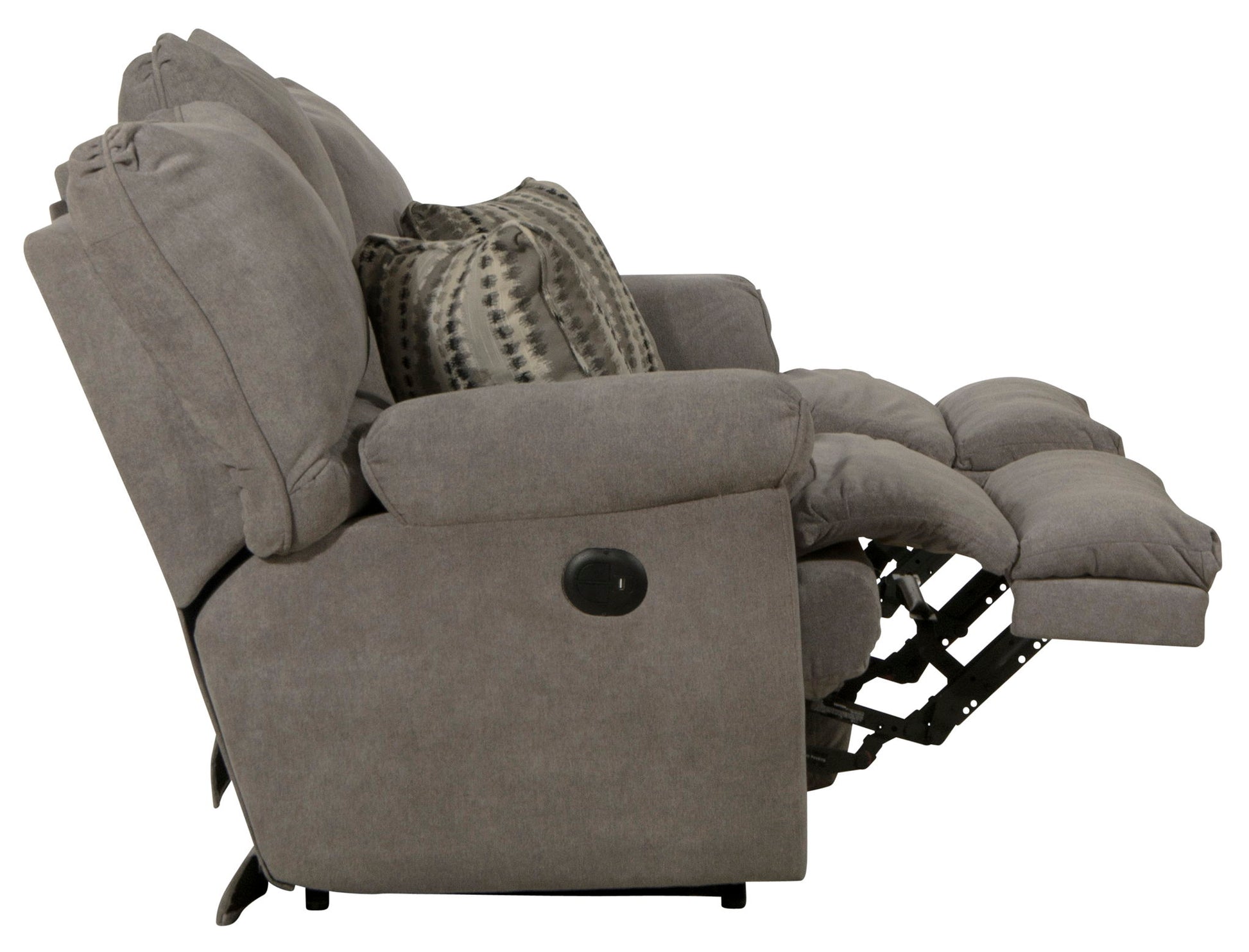 Sadler - Power Lay Flat Reclining Sofa With Drop Down Table - Mica