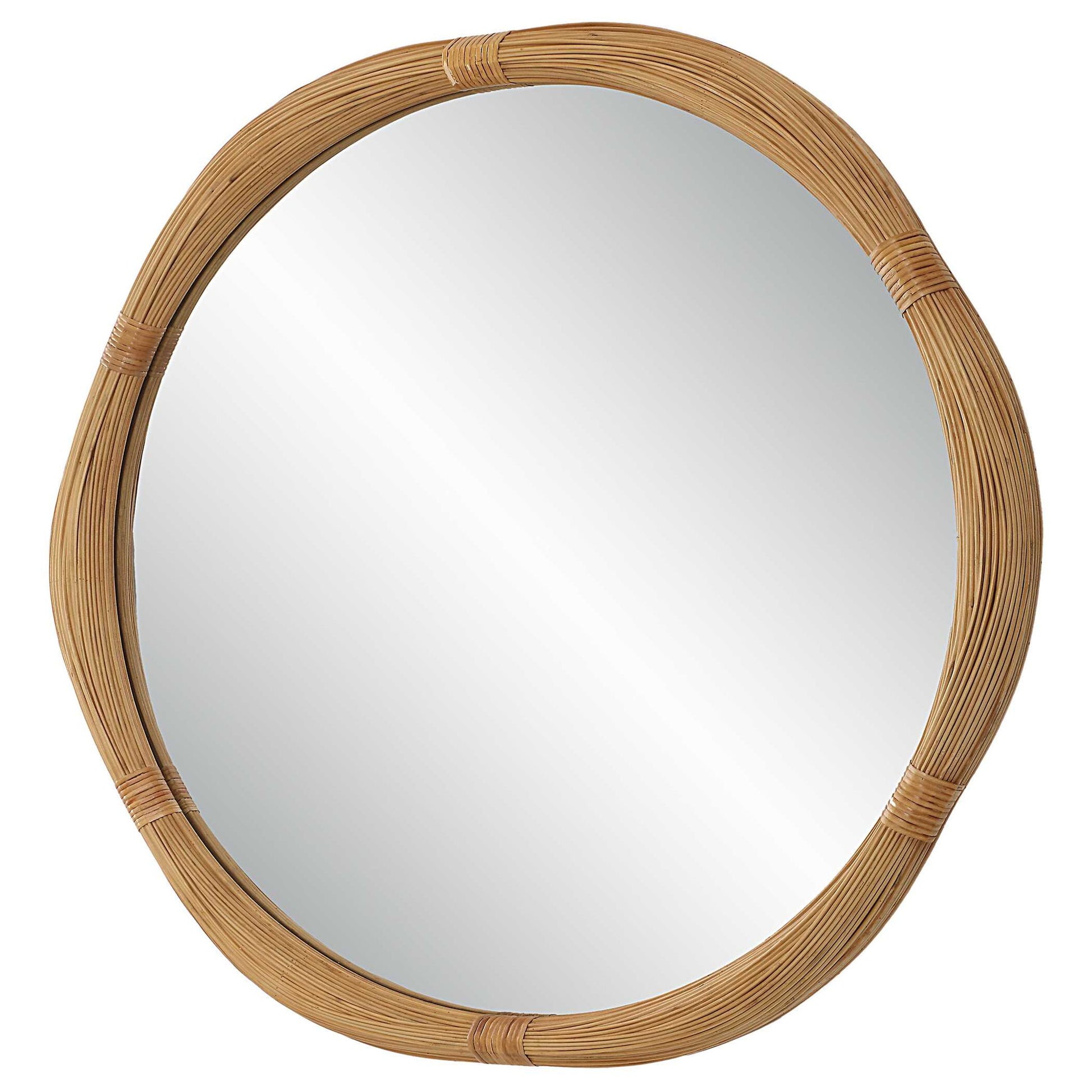 Inspired By Elements Found In Nature This Round Mirror Features A Bamboo Wrapped Frame Banded With Natural Rattan Wraps, Creating An Organic Shape.