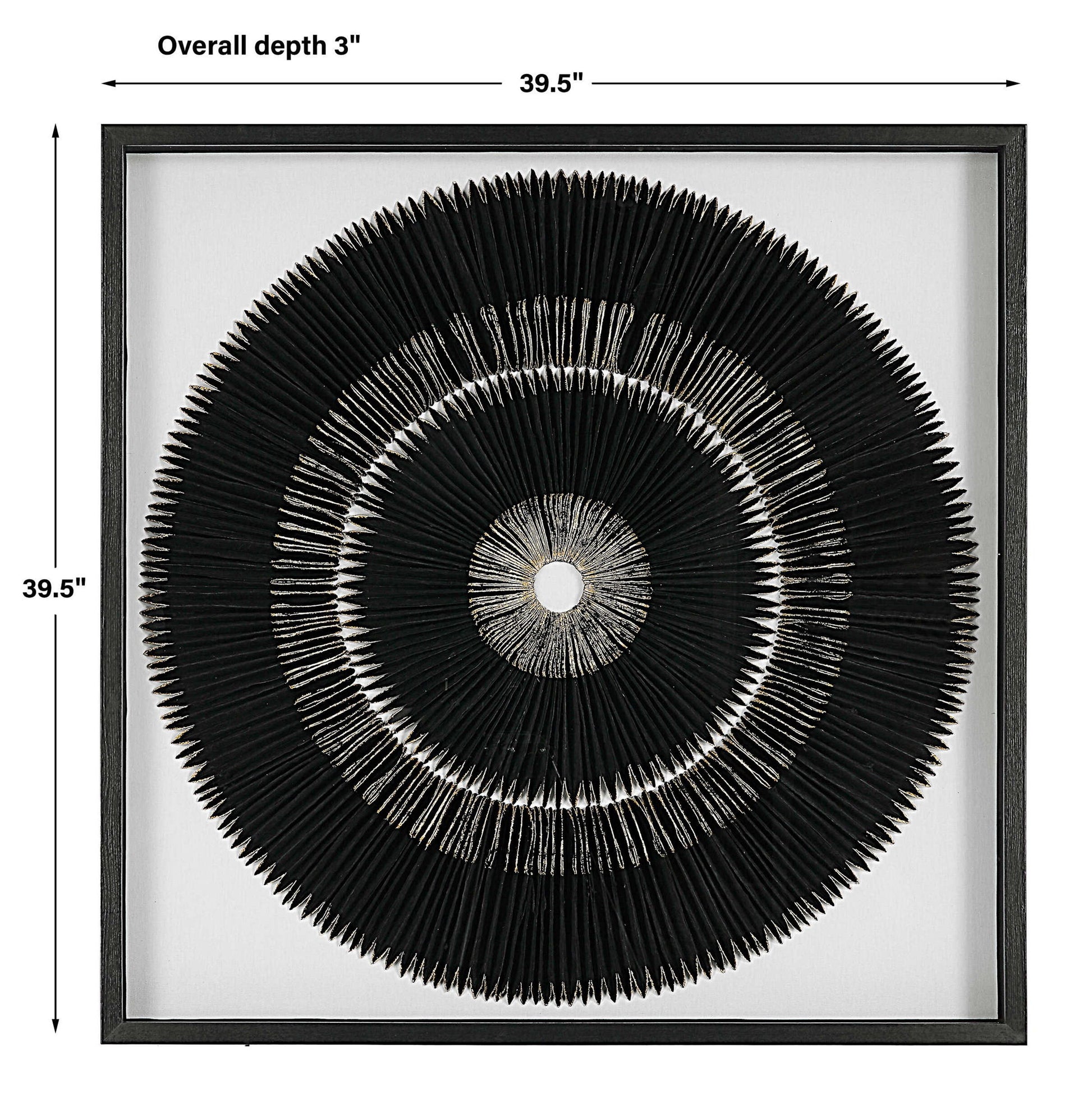 Handcrafted By Skilled Artisans, This Wall Decor Features A Striking Black And Gold Leaf Medallion. Artwork Is Set Against A White Linen Backing In A Black Shadowbox Style Pine Wood Frame Under Glass.