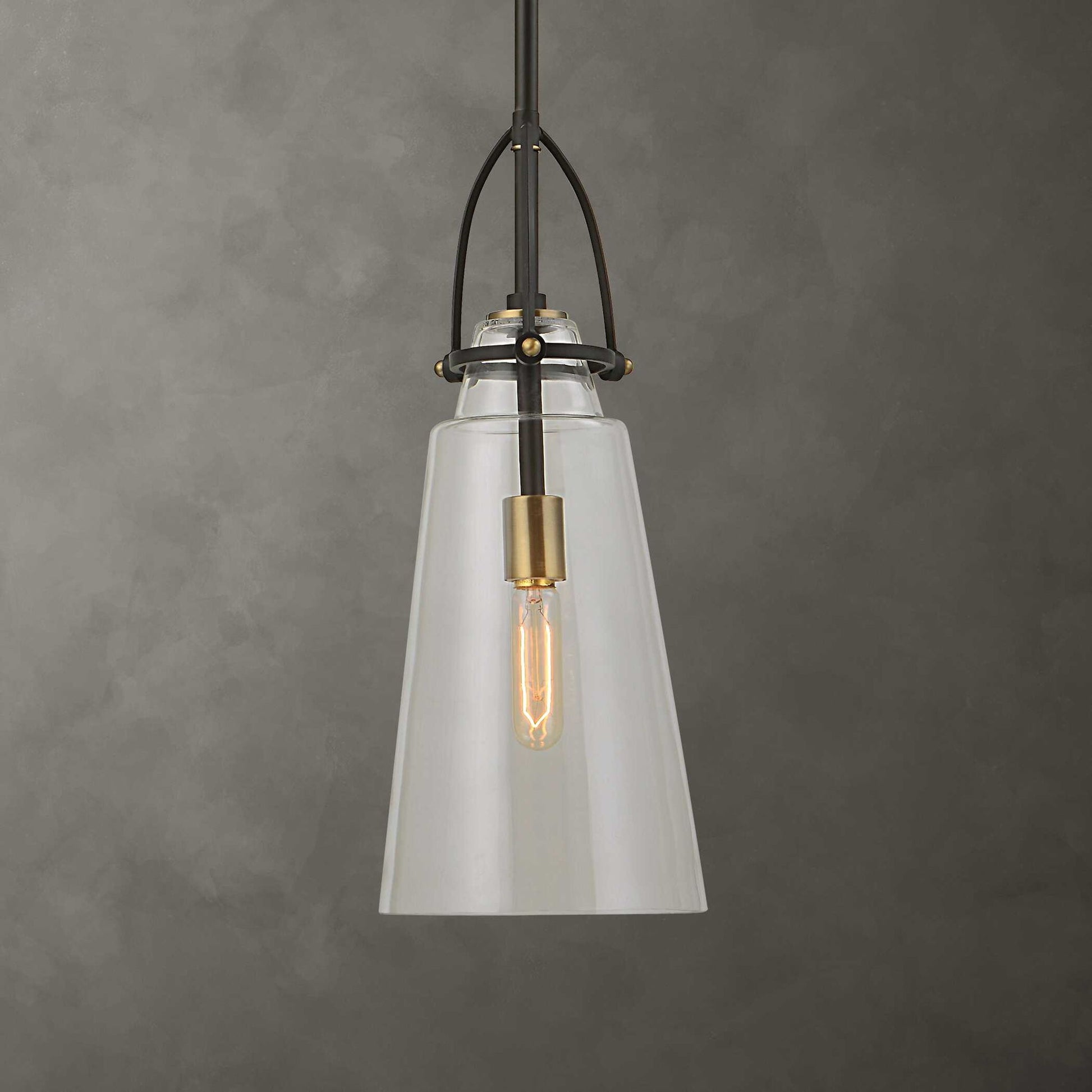 This Timeless 1 Lt. Mini Pendant Is Finished In Black With Antique Brass Accents Featuring Clear Glass And A Touch Of Rustic & Industrial Design. 1-60 Watt Max, Edison Socket. Bulb Not Included. Supplied With 15' Wire, And 3-12" Stems & 1-6" Stem For Adjustable Installation.