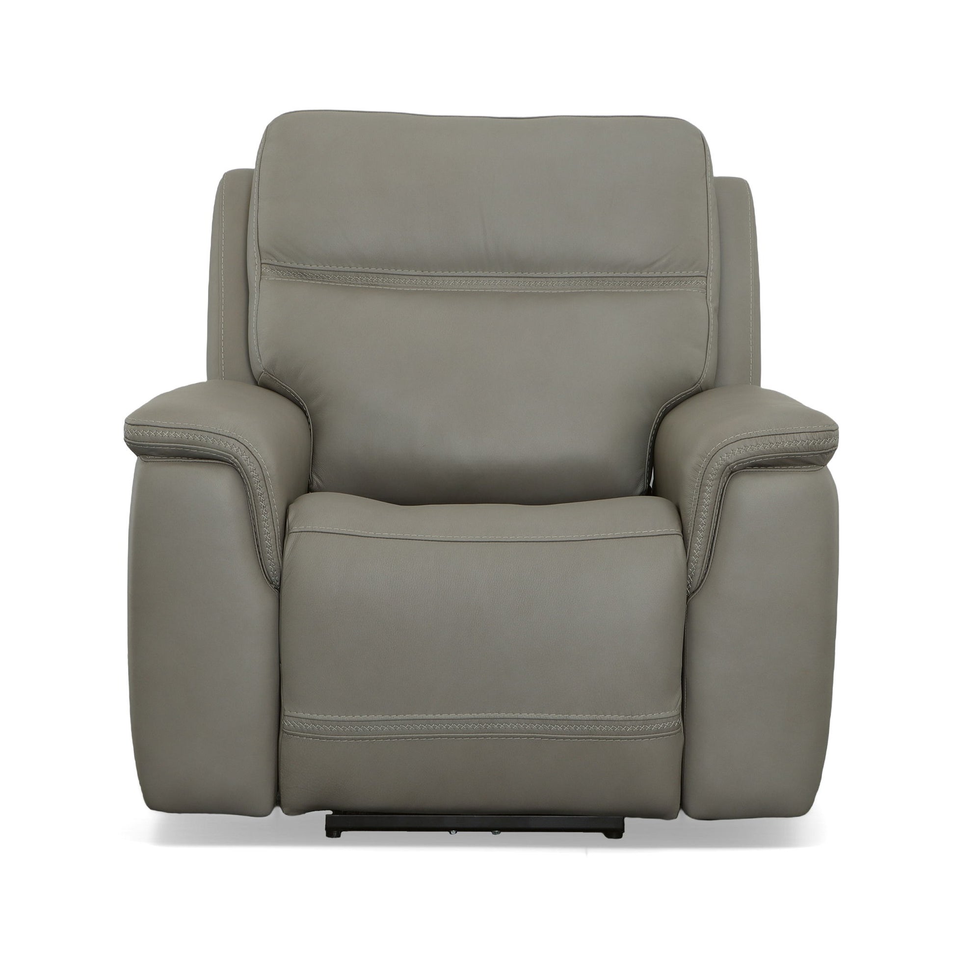 Transform your living space with the Sawyer power recliner with power headrest and lumbar, a perfect blend of comfort and style. This stunning design features high-quality, gray top grain leather upholstery with unique cross-stitching and a distinct arm silhouette, adding a sophisticated touch to any room. Customize your comfort with power recline, headrest and lumbar support at the touch of a button and experience Zero Gravity reclining, relieving pressure from your joints. Designed for durability and longevity, this recliner includes Flexsteel’s patented Blue Steel Spring™, providing unmatched seat comfort and durability that you can count on.