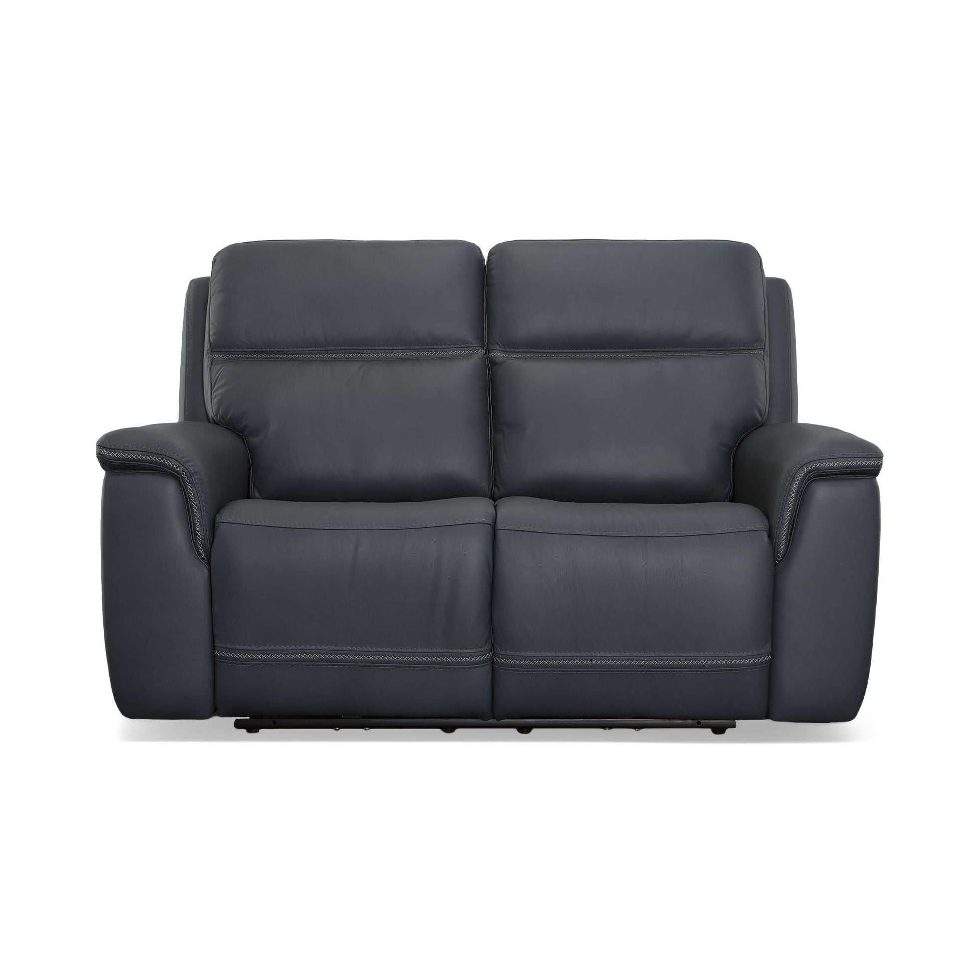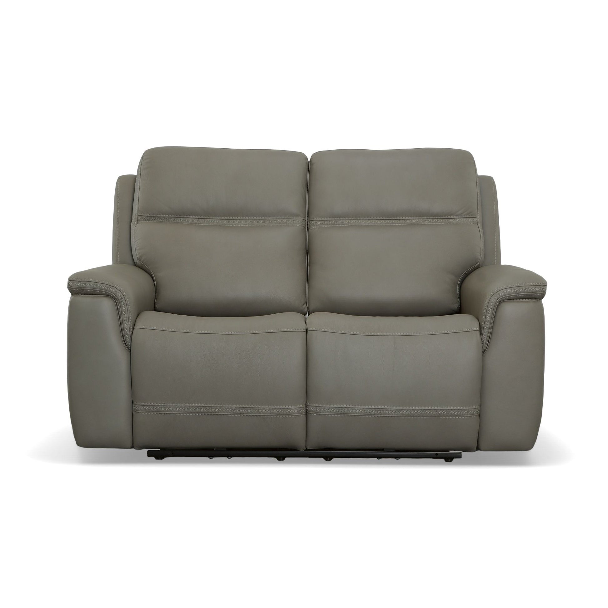 Transform your living space with the Sawyer power reclining loveseat with power headrests and lumbar, a perfect blend of comfort and style. This stunning design features high-quality, gray top grain leather upholstery with unique cross-stitching and a distinct arm silhouette, adding a sophisticated touch to any room. Customize your comfort with power recline, headrests and lumbar support at the touch of a button and experience Zero Gravity reclining, relieving pressure from your joints. Designed for durability and longevity, this loveseat includes Flexsteel’s patented Blue Steel Spring™, providing unmatched seat comfort and durability that you can count on.