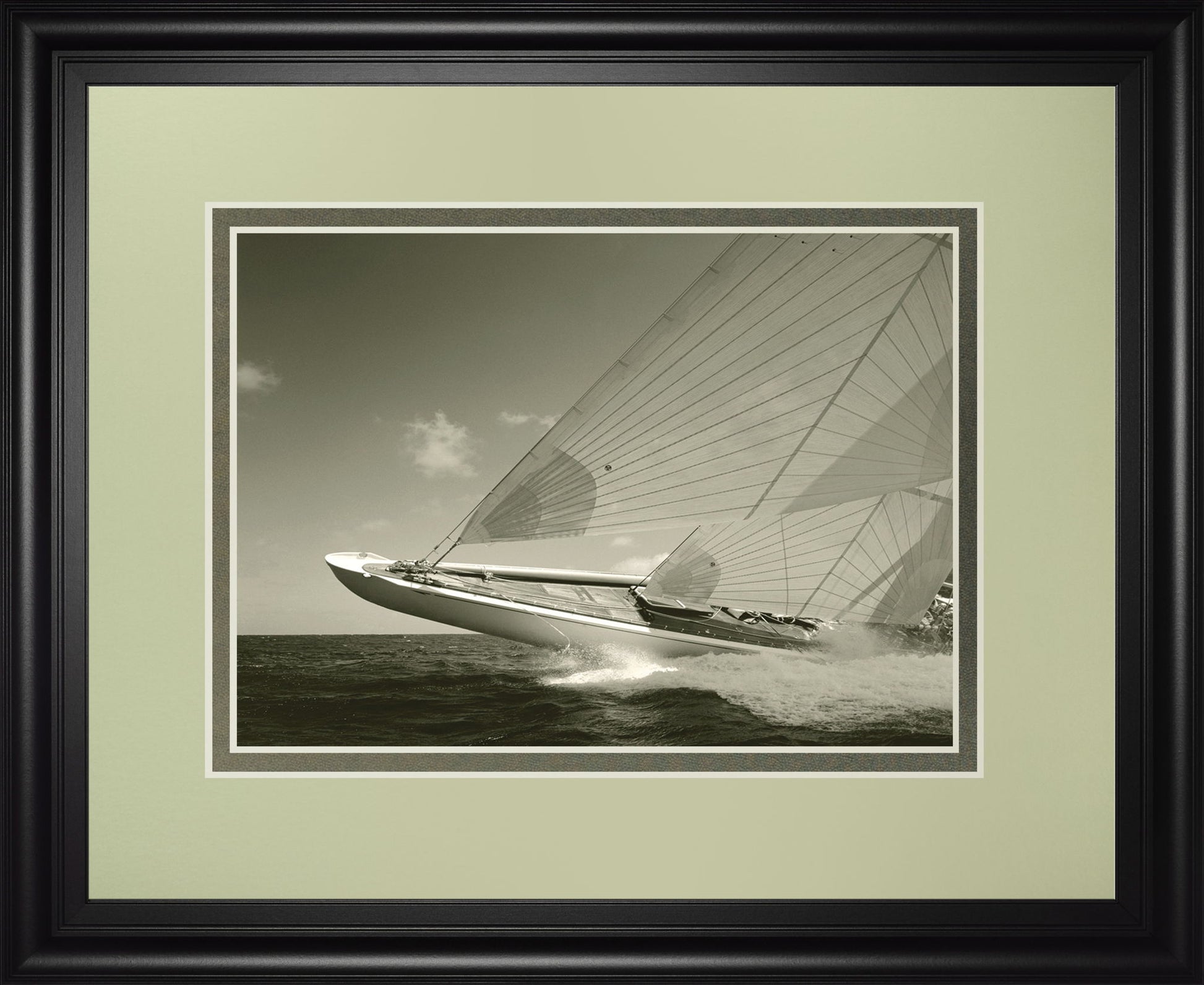 Experience the serene power of the sea with this captivating framed photographic print. Featuring a sleek sailboat cutting through the waves, the monochrome tones highlight the graceful movement and timeless spirit of coastal adventure. Surrounded by a sophisticated midnight aura frame with double beige matting, this piece adds depth and elegance to any living room, office, or den. Crafted with premium real glass and ready to hang, it offers a perfect blend of artistic beauty and lasting quality, inviting you to bring the calm and excitement of the ocean into your space.