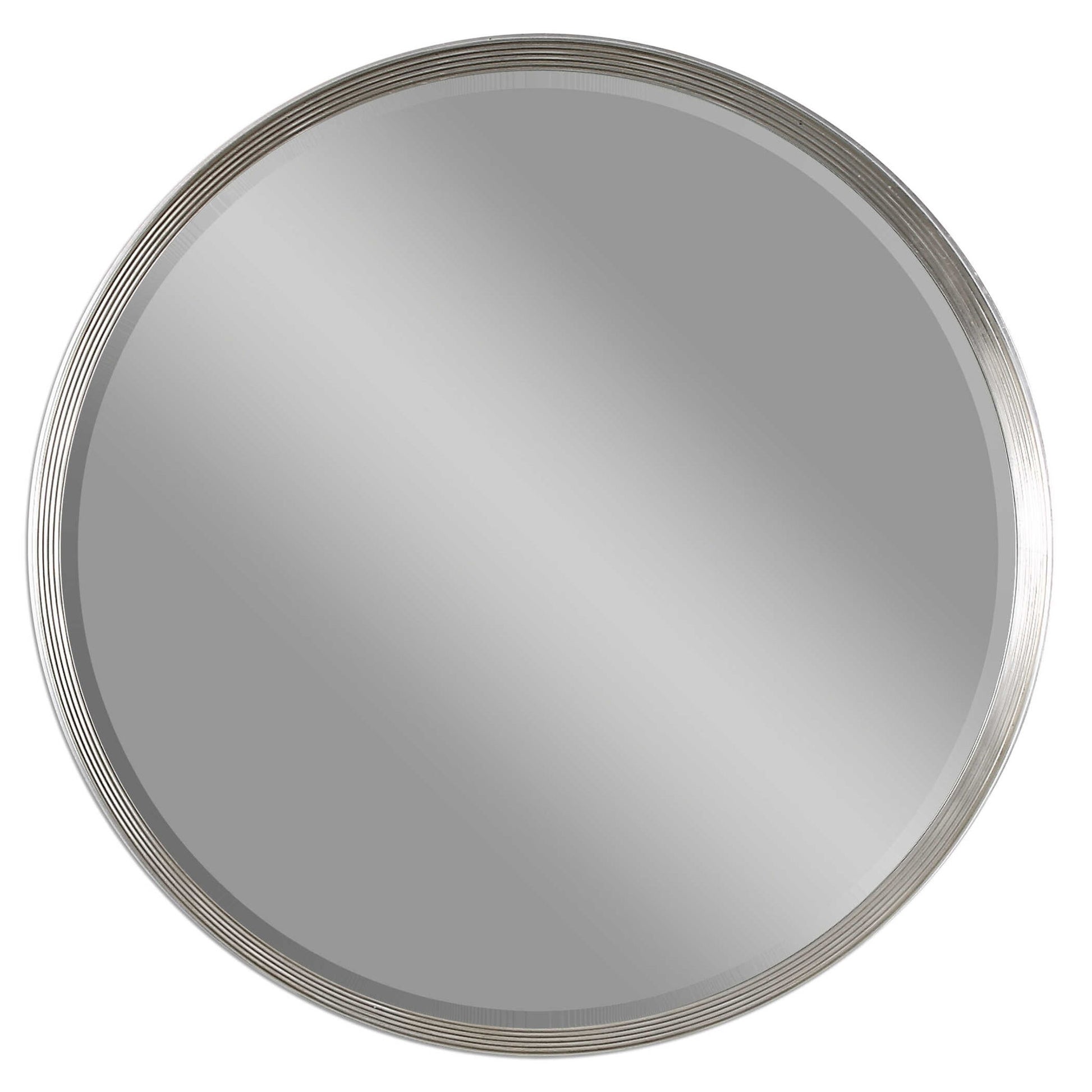 Frame Features A Stepped Profile With Silver Leaf Finish And Black Outer Edge. Mirror Has A Generous 1 1/4" Bevel.