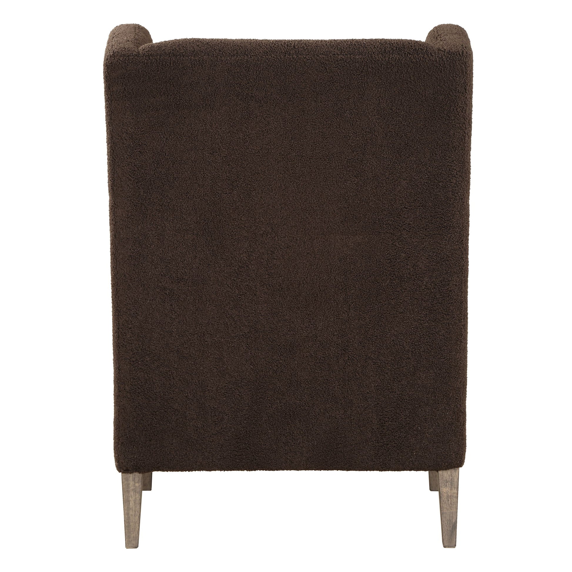A Classic Wingback Chair With A Modern Twist. Dramatic Curved Lines Are Accentuated By The Rich Chocolate Faux Shearling. Resting On Solid Wood Tapered Legs Finished In Weathered Light Walnut.