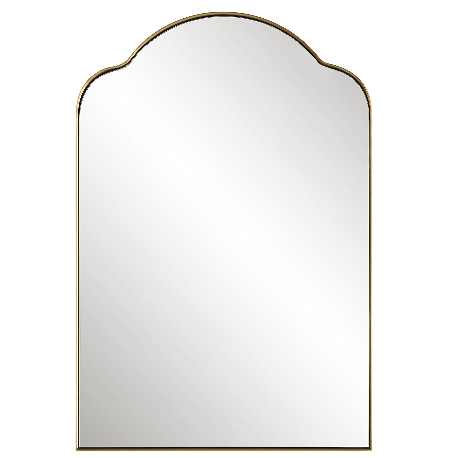The Sidney Arch Showcases A Gracefully Curved Silhouette With A Plated Brushed Brass Finish Over A Stainless Steel Frame, Surrounding A Floating Polished Edge Mirror.