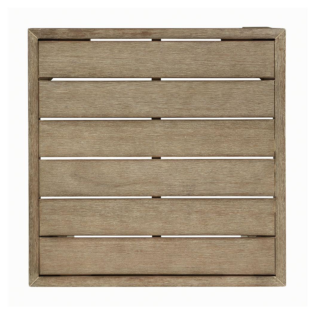 Beautifully on point, this outdoor end table is the natural choice for modern minimalists who know that less is more. Quality crafted of eucalyptus wood, this ultra clean-lined outdoor table is enriched with a multi-step embossed finish that both brings out the wood’s natural grain and protects it from the elements for seasons of fun in the sun. Incorporating form and function, the plank top naturally sheds rainwater.