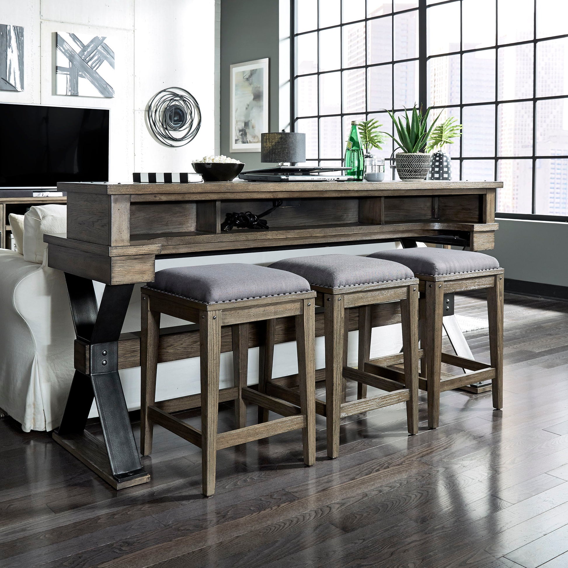 Urban living is defined as surrounding oneself in a modern environment, refurbished building or studio/loft. A natural feeling created by the living space as well as the furnishings that attribute to it. The essence of the urban living furniture is its unique ability to fit many different styles���Rustic, casual, contemporary���A mixture of materials with distressed finishes and textured fabrics. Sonoma Road is the essence of Urban Living styling with a weather beaten bark finish combined with metal accents throughout the collection.