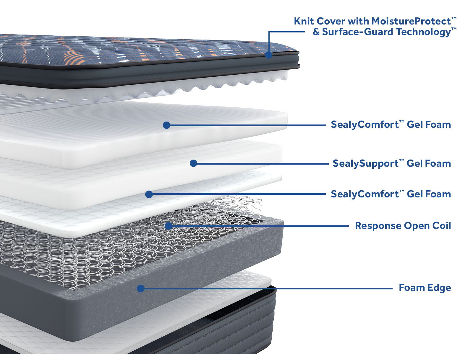 The Sealy Special Edition Soft mattress provides even support with Response Open Coils. And the CoreSupport center offers extra support for the heaviest part of the body with an additional layer of high-quality memory foam.