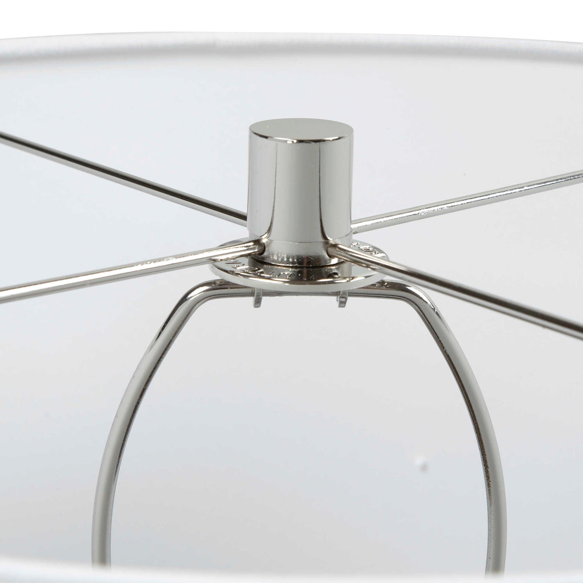 Reminiscent Of The Evening Sky, This Beautiful Table Lamp Features An Art Glass Base With Shades Of Navy, Cobalt And White Accented By An Elegant Crystal Foot And Polished Nickel Plated Details. A Crisp White Hardback Drum Shade Completes The Look.