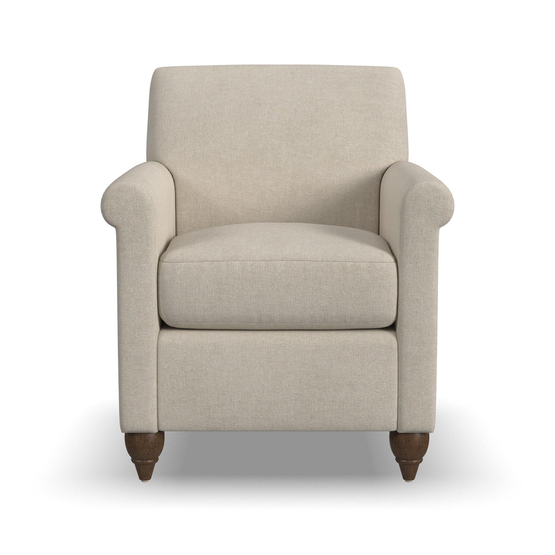The perfect elegant piece to accentuate your home, the picturesque petite roll arms of the Stella chair invite you in. Take a seat atop a removable and reversible cushion that is supported by our patented Blue Steel Spring system – backed by our lifetime guarantee. Handcrafted with a durable frame and upholstered with careful detail, Stella is designed to last. The tight back and turned wood legs give this quaint chair a modern flair. Elevate your home with the chic style of Stella.