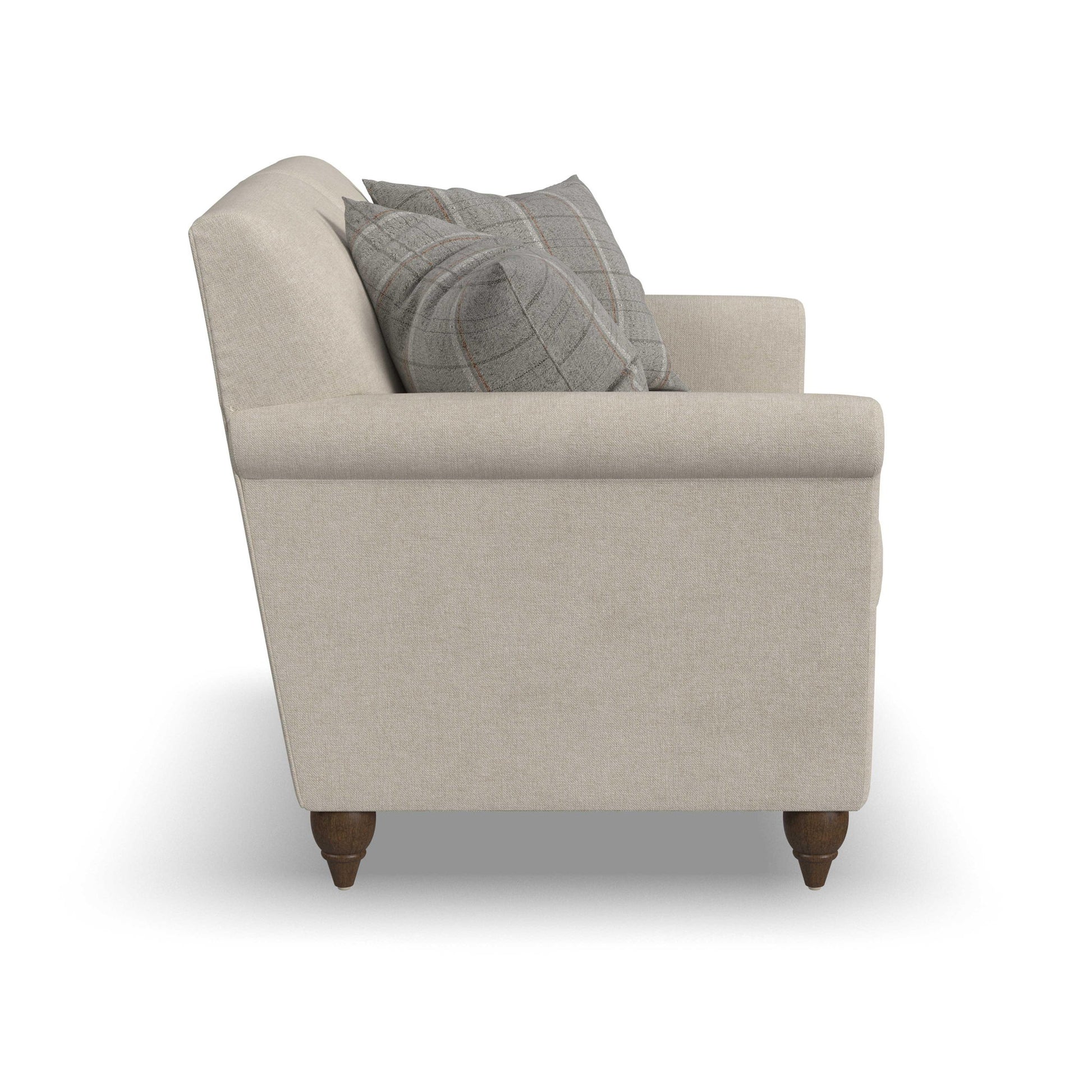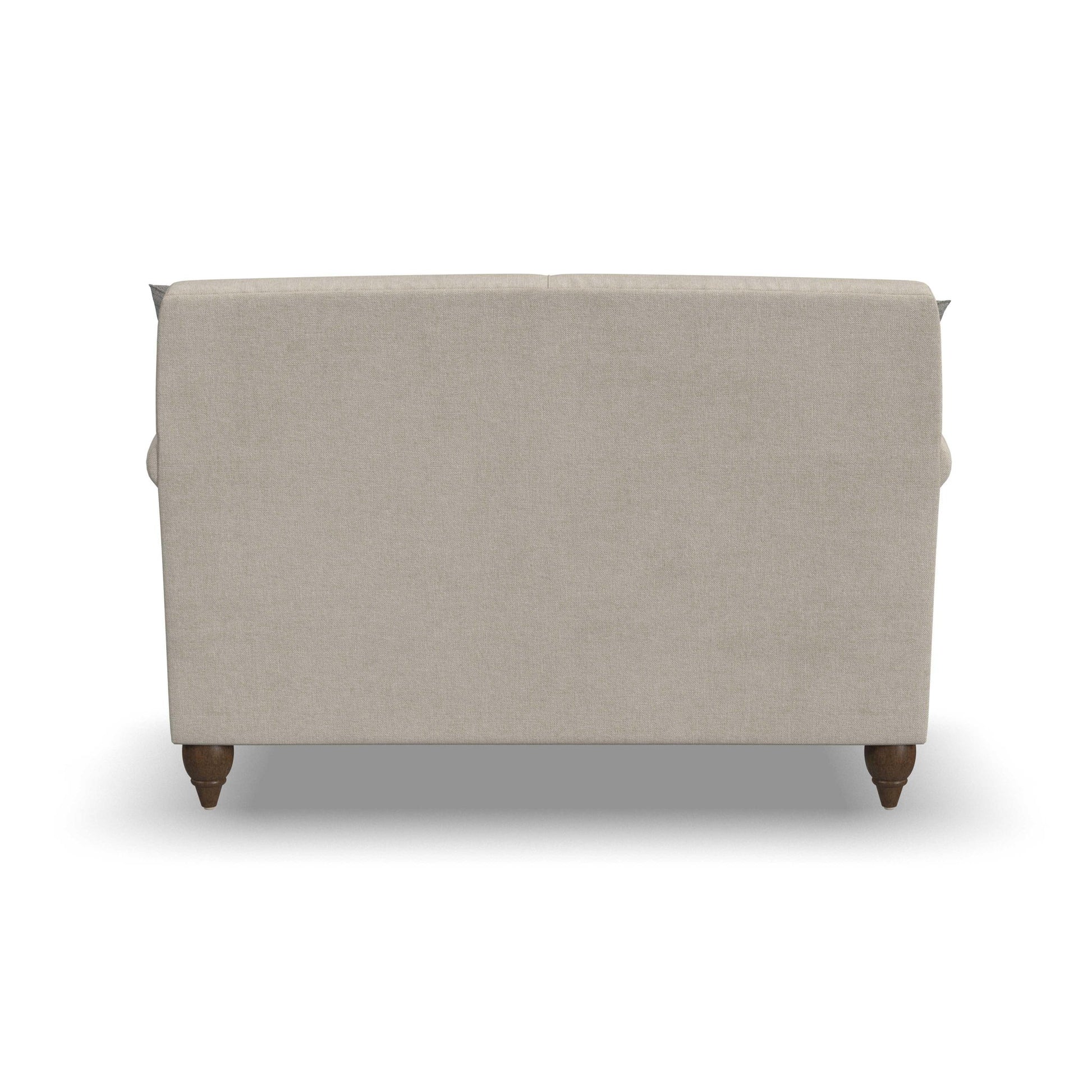 The perfect elegant piece to accentuate your home, the picturesque petite roll arms of the Stella loveseat invite you in. Take a seat atop removable and reversible cushions that are supported by our patented Blue Steel Spring system – backed by our lifetime guarantee. Handcrafted with a durable frame and upholstered with careful detail, Stella is designed to last. The tight back and turned wood legs give this quaint loveseat a modern flair. And with two accent pillows in your choice of fabric, elevate your home with the chic style of Stella.