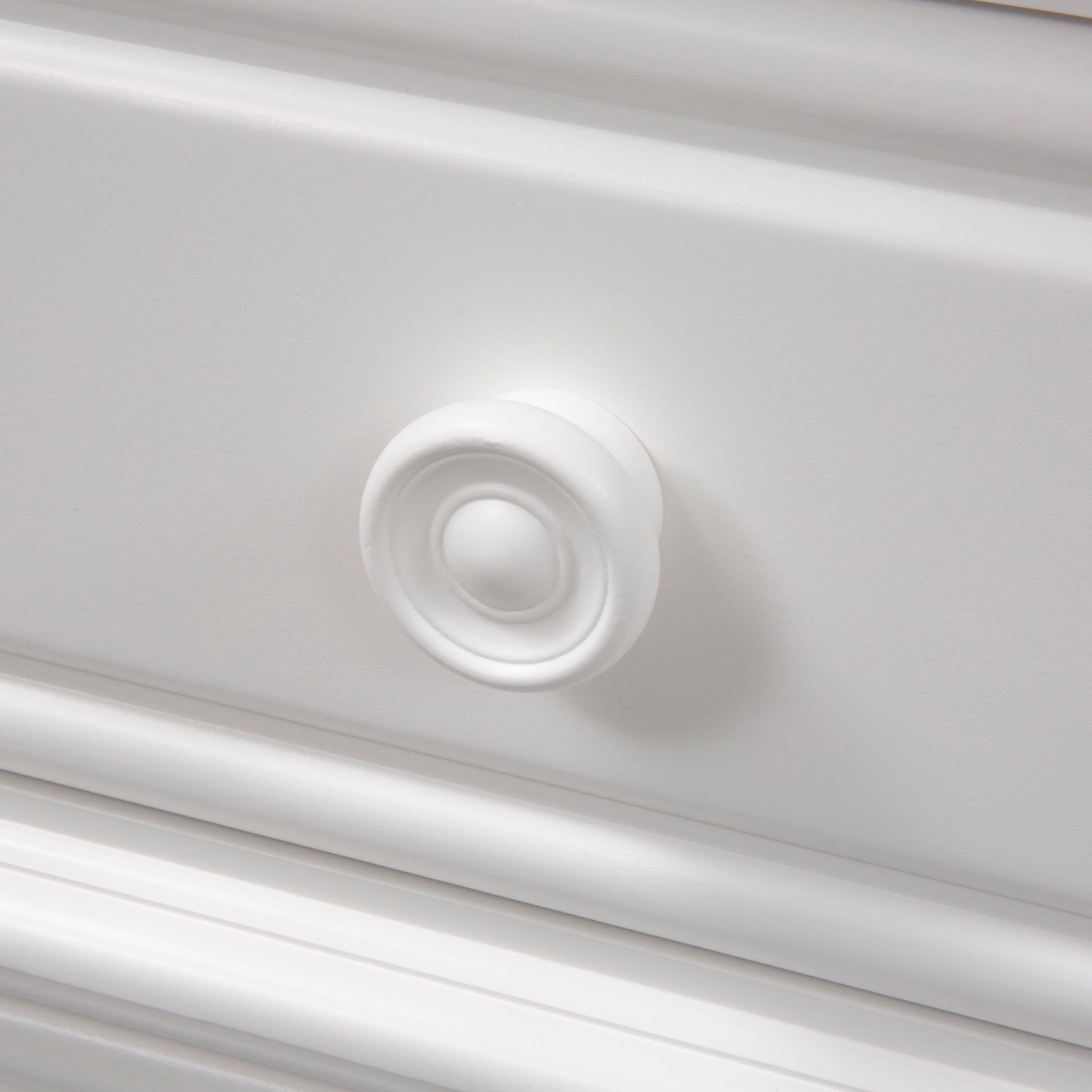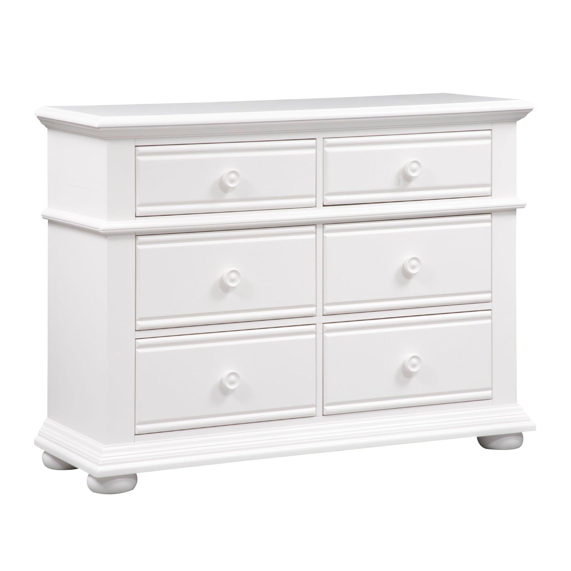 Cottage design is always in fashion. Summer house features the best of cottage with louvered panel accents in an Oyster white finish.