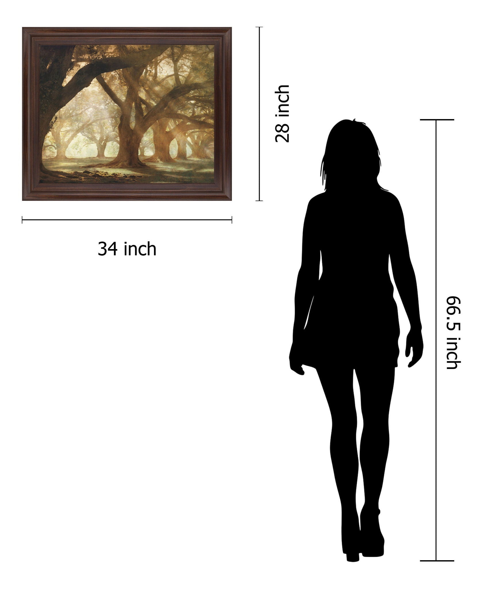 Step into the serene beauty of dawn with this captivating wall art that captures the gentle embrace of morning sunlight filtering through majestic oak trees. The warm cinnamon mocha frame adds a rustic charm, perfectly complementing the soft golden hues and tranquil greens of the landscape. Enhanced by premium real glass and a sturdy 3-inch wide frame, this piece brings vivid detail and natural vibrancy to any living room, office, or den. Professionally crafted and ready to hang, it invites you to pause and savor the quiet magic of nature’s early light every day.