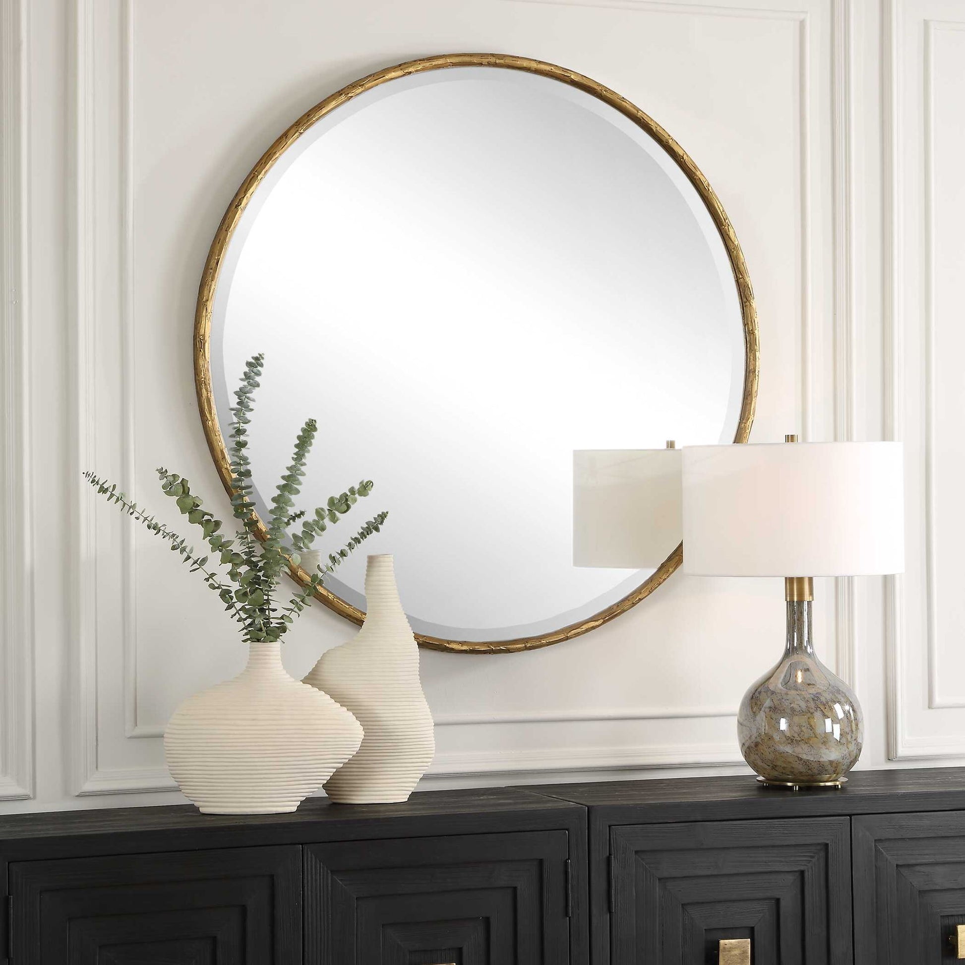 With Its Aged Gold Finish And Subtle Plaster Effect, The Sutton Round Mirror Is A Blend Of Timeless Elegance And Rustic Charm. Mirror Features A 1" Bevel.