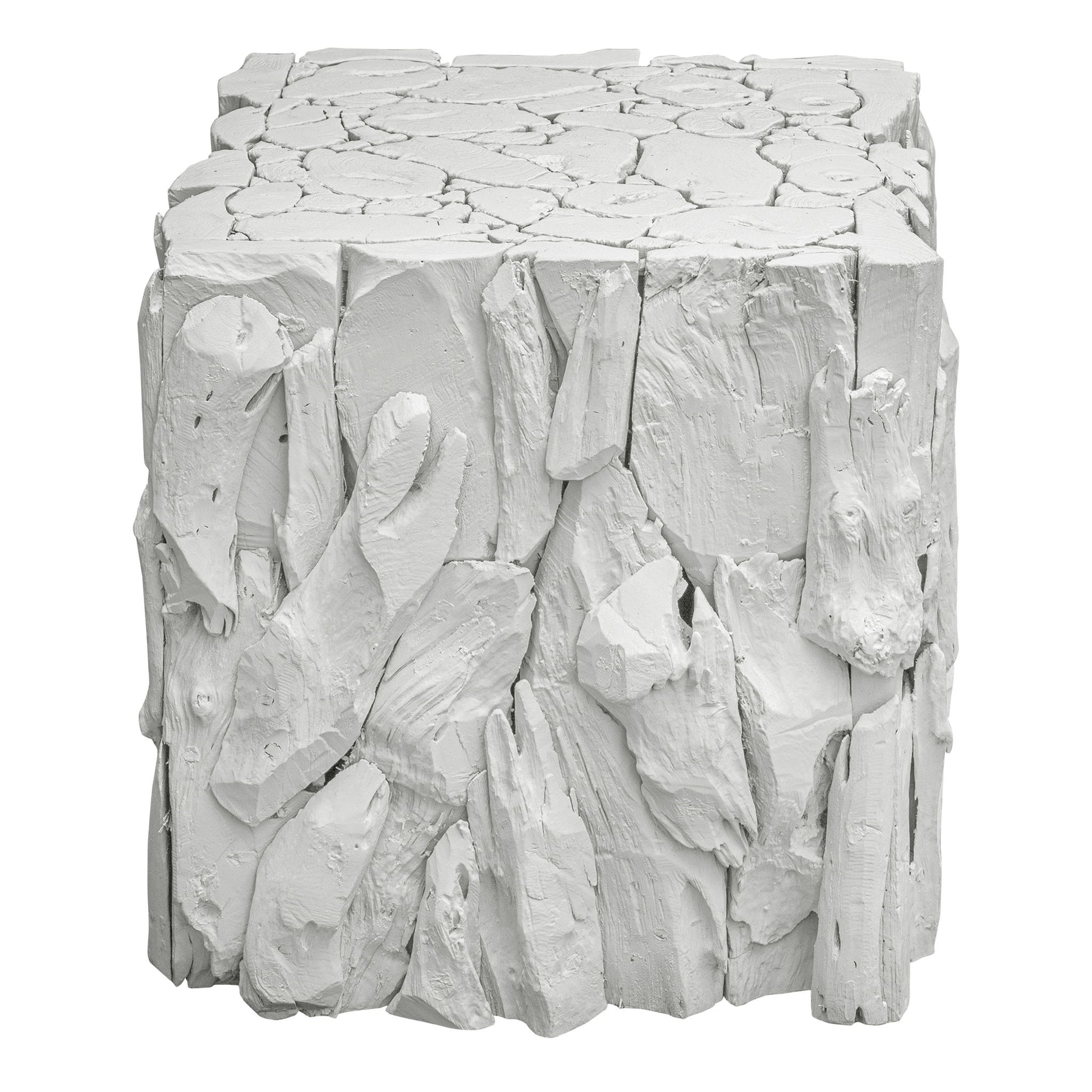 Whitewashed Teak Wood Skillfully Pieced Together Into An Artistic And Precise Sculpture With A Smoothly Sanded Top And Open Bottom, Multiplying Its Use As A Table, Seat, Or Box Planter.
