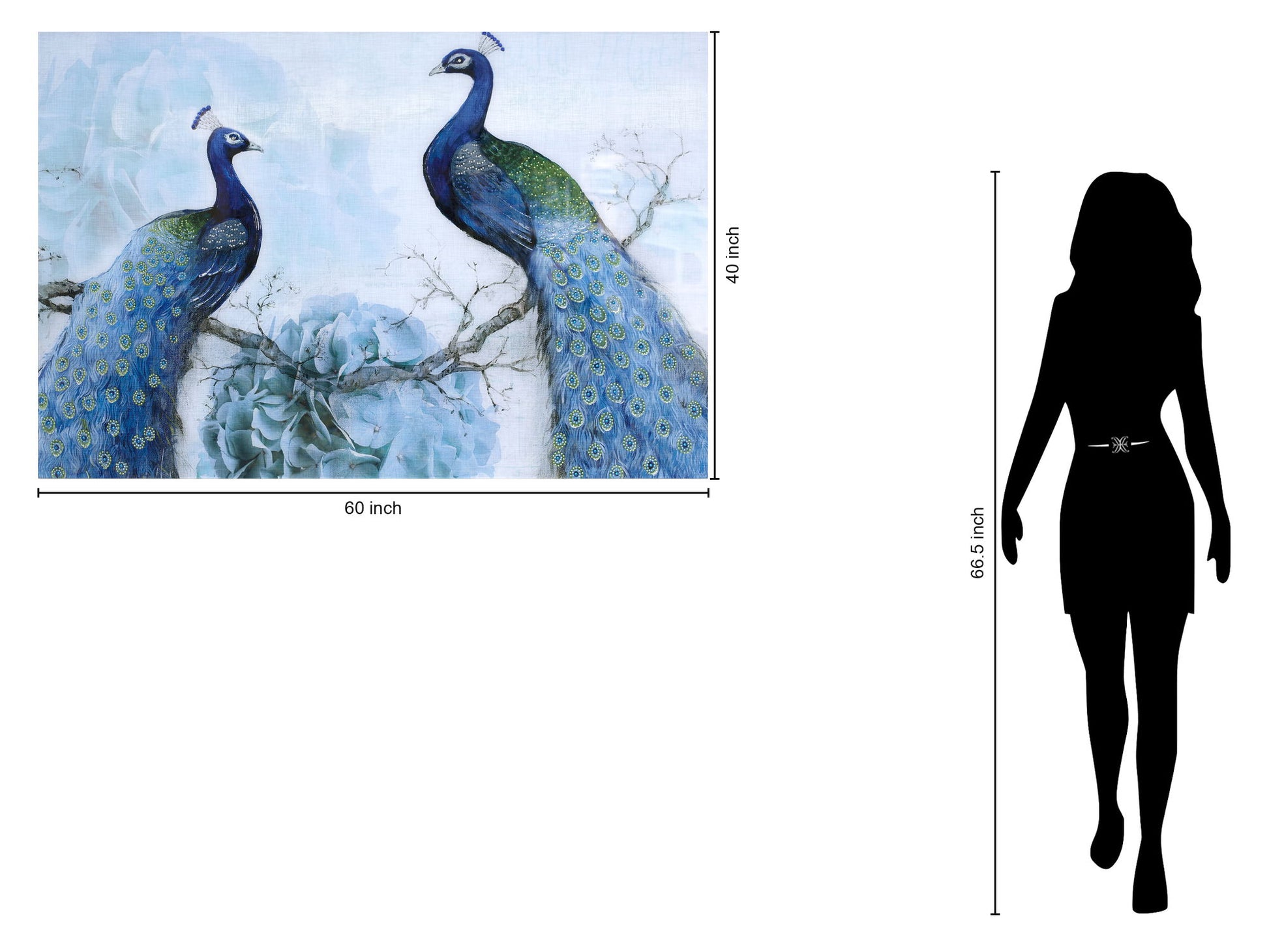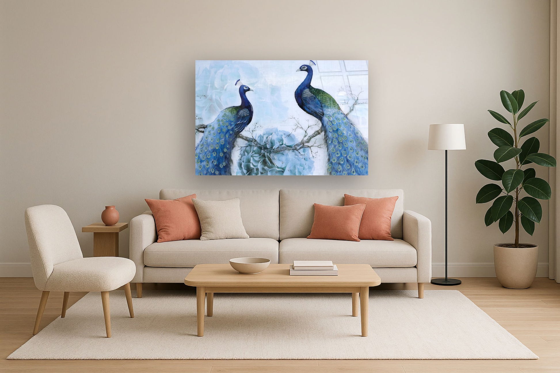 Tempered Glass With Foil & Rhinestones - Peacocks - Light Blue