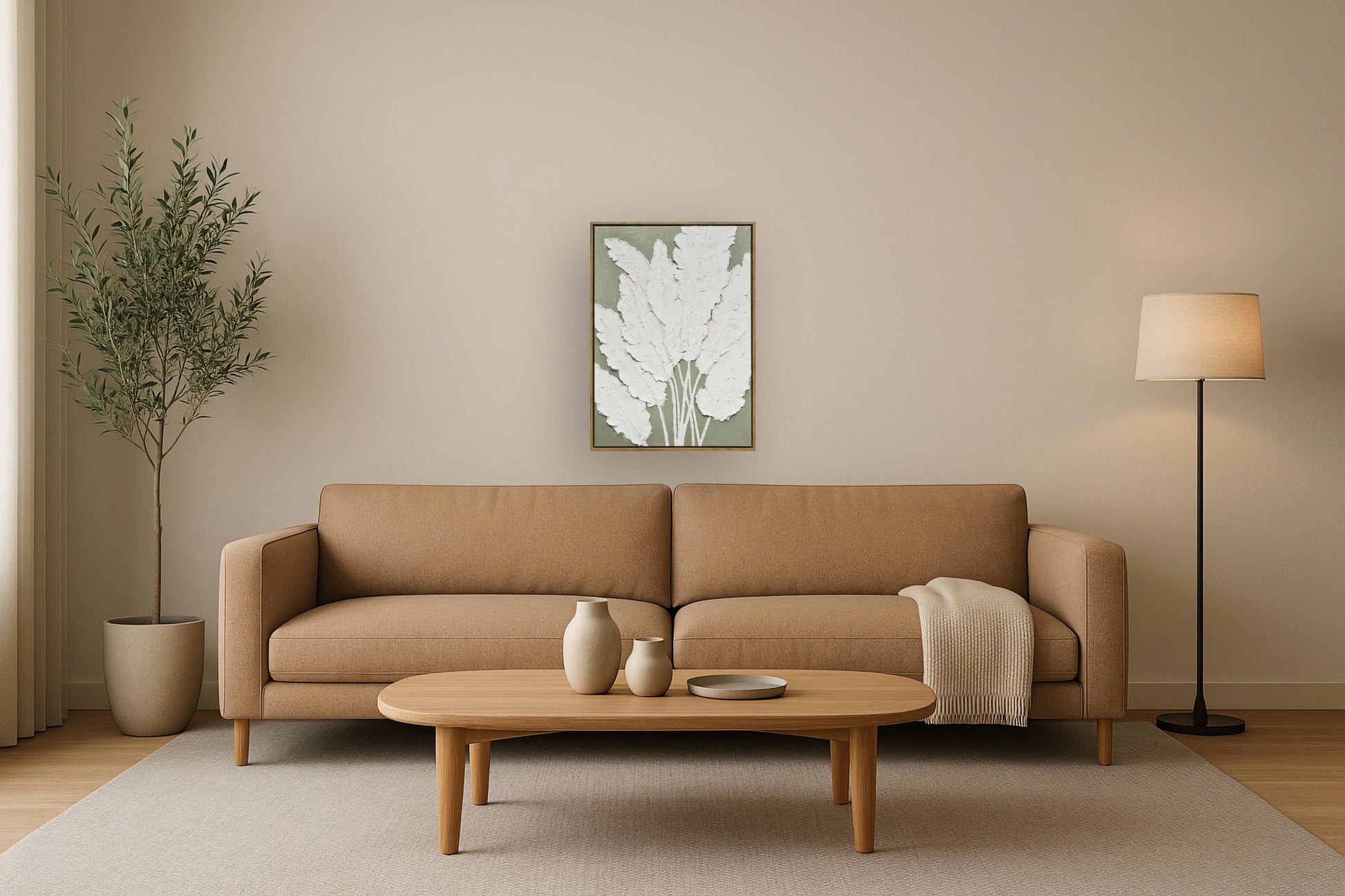 Experience the serene beauty of nature with this textured foliage painting. The hand-embellished acrylic work captures the delicate details of leaves, bringing a touch of tranquility to any space. Perfect for adding a natural element to your living room or bedroom decor.