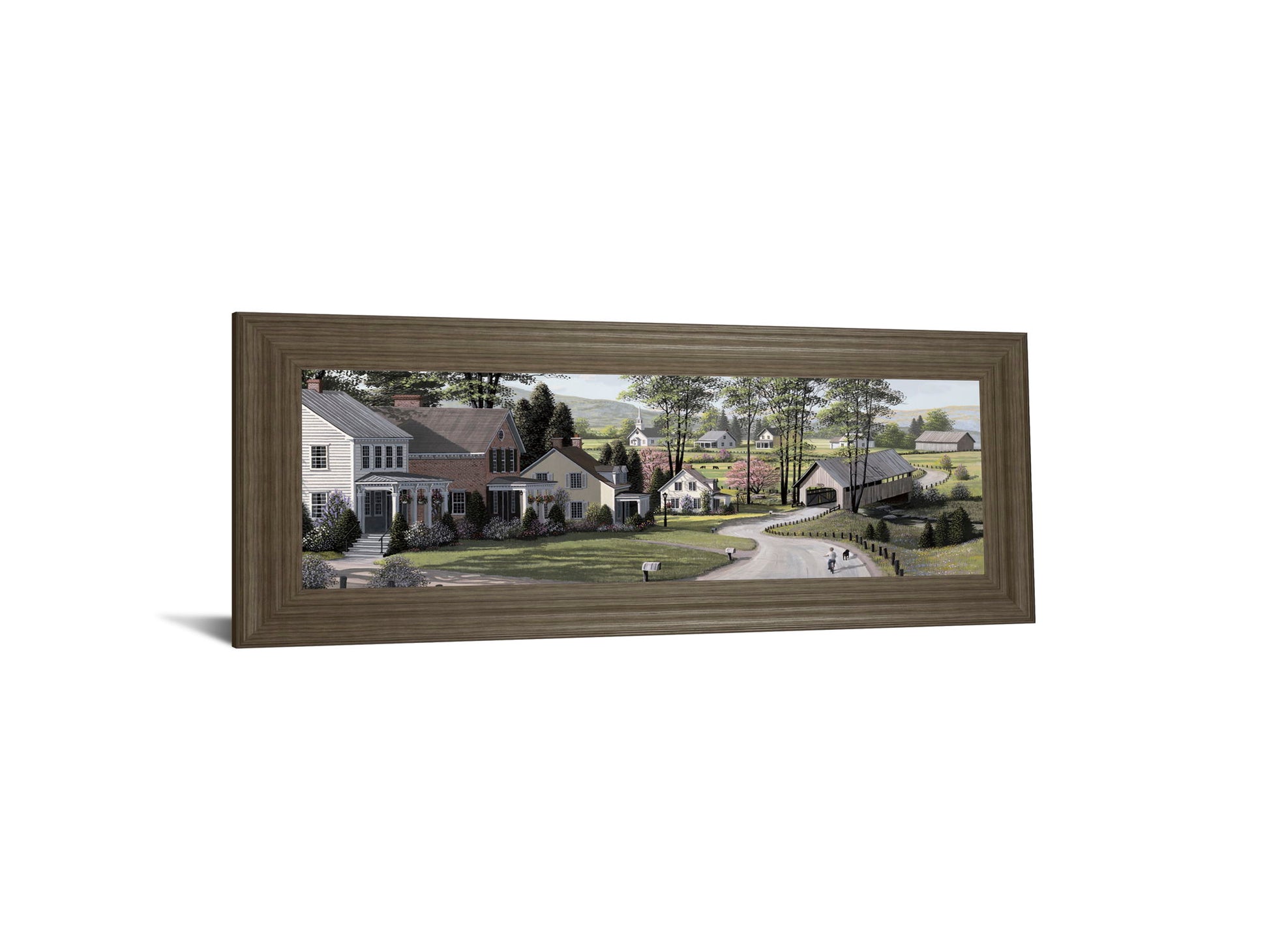 Step into a peaceful countryside where time slows down and nature's beauty takes center stage. This framed wall art captures a charming covered bridge winding through a quaint rural village, surrounded by blossoming trees and classic homes. The warm brown frame and premium glass enhance the intricate details, inviting you to bring a touch of nostalgia and tranquility into your living room, dining room, or hallway. Crafted with care and ready to hang, this piece transforms any space into a serene retreat filled with the gentle spirit of country living.