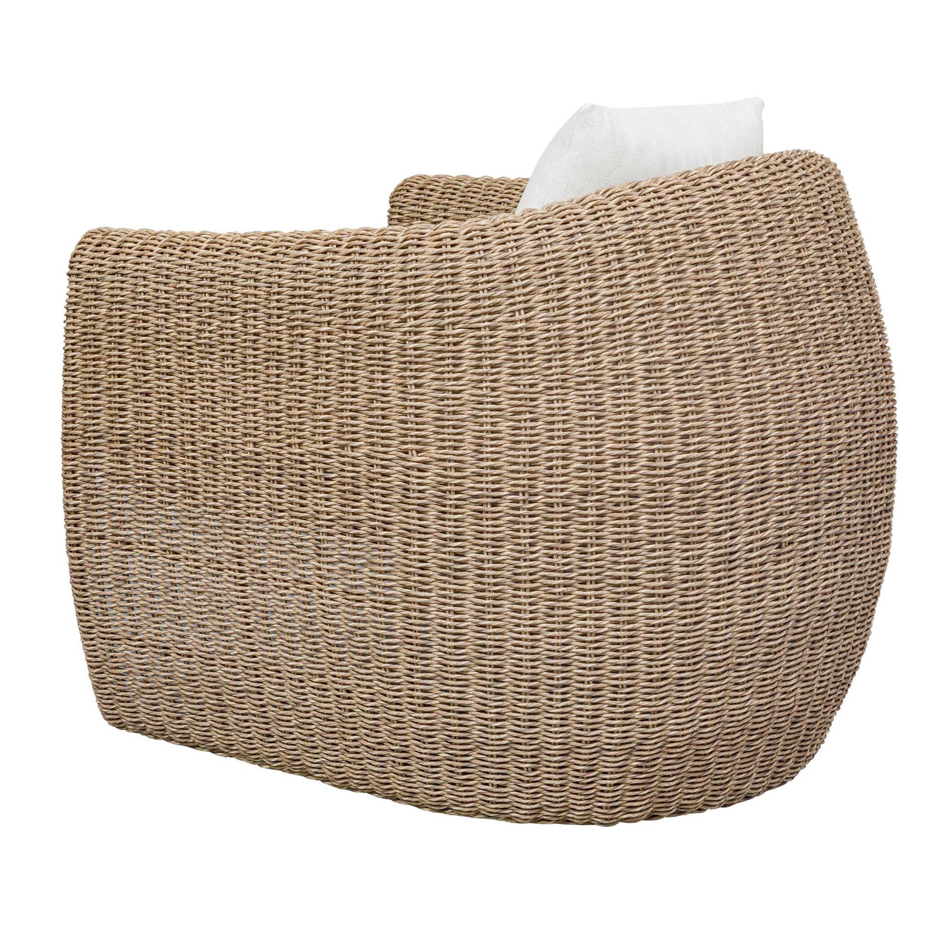 The Floating Frame Of The Tropic Lounge Chair Is The Perfect Piece For Stylish But Casual Outdoor Living. Crafted With A Sleek, Continuous Woven All-weather Wicker Frame In Golden Flax, This Chair Offers A Contemporary Silhouette While Ensuring Durability For All-weather Use. The Contoured, Deep-seated Cushions In Oyster White Solution Dyed Acrylic Fabric Provide Ultimate Comfort.