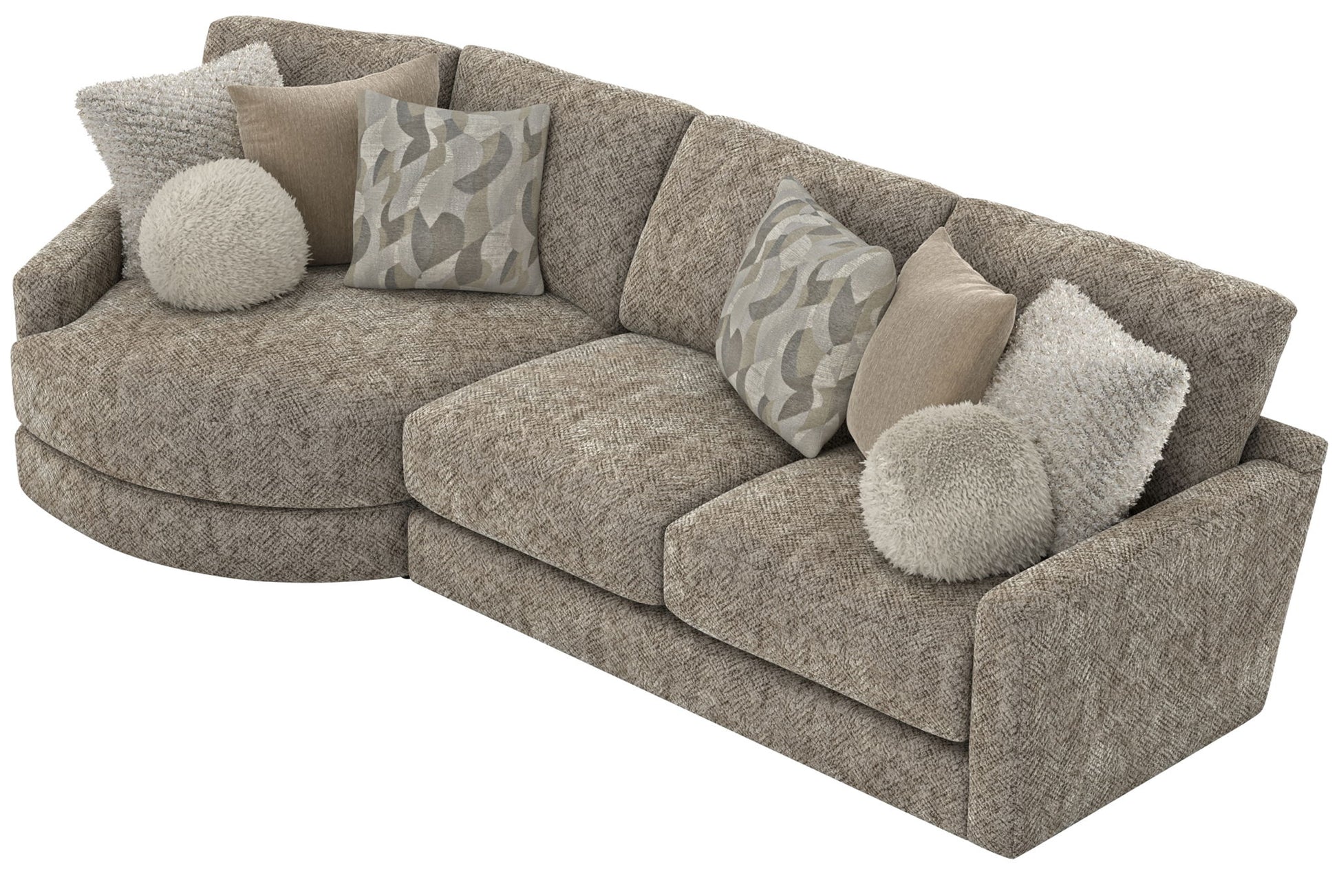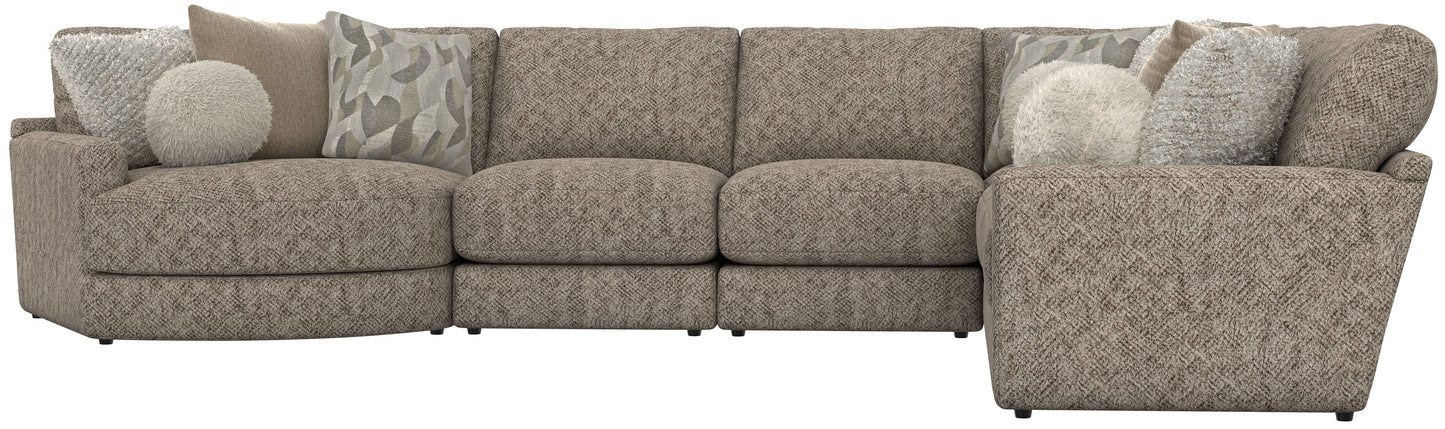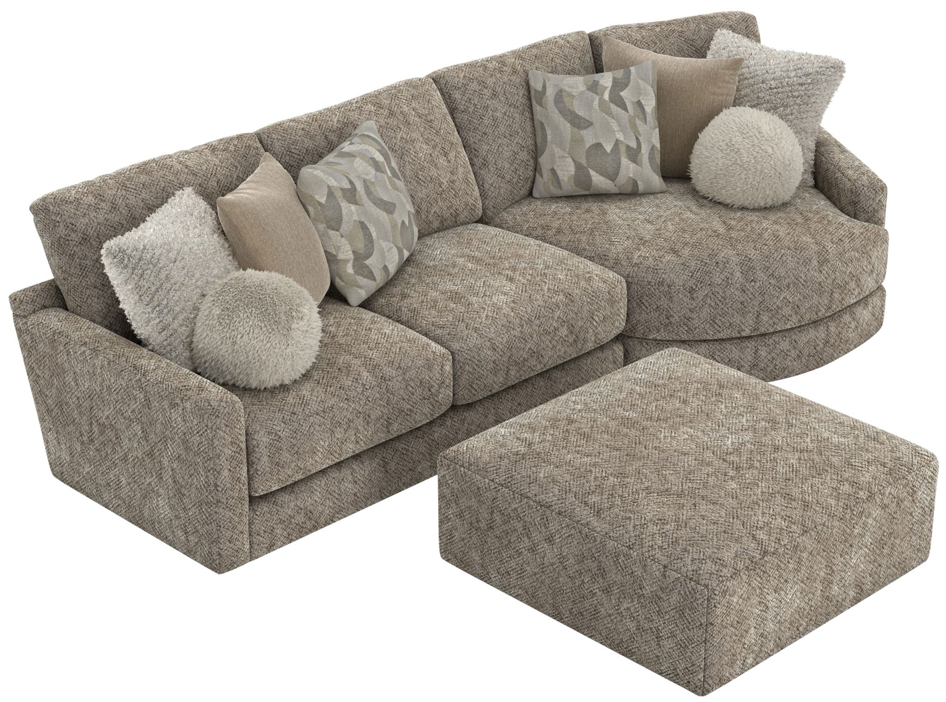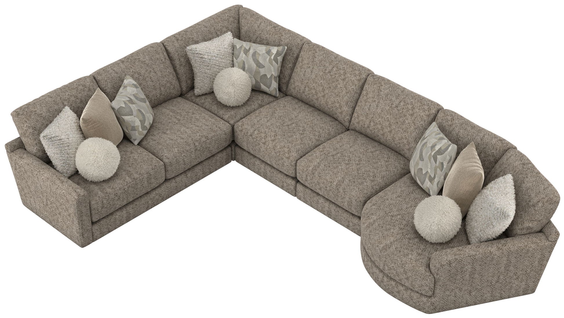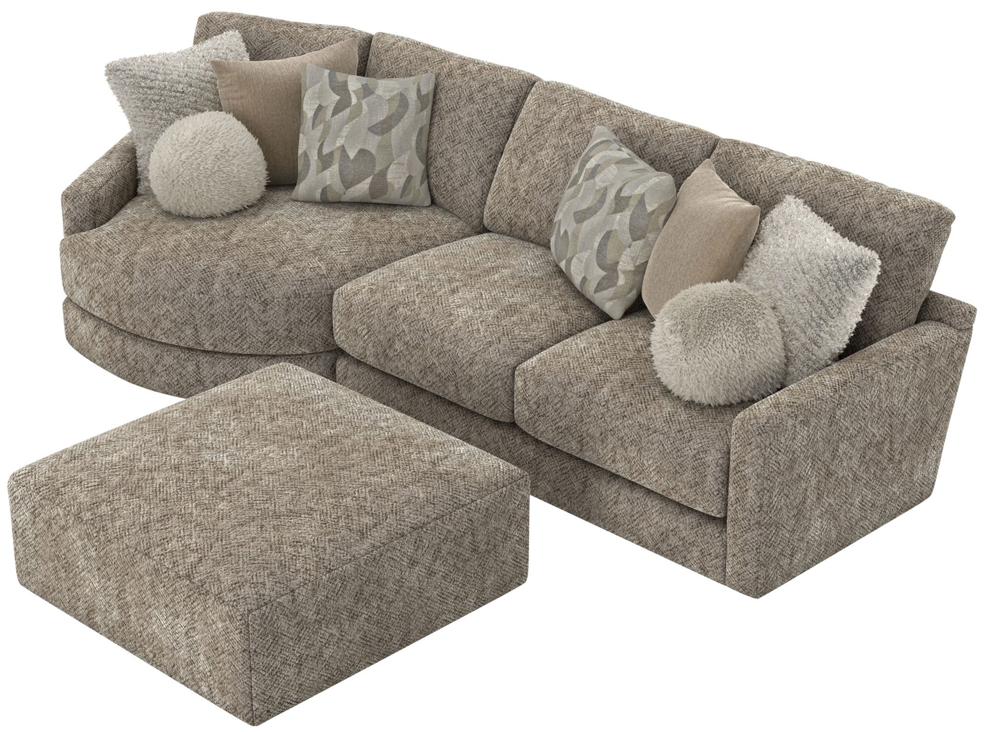 Turner features an assortment of individual pieces, including an interesting Piano Wedge with a curved seat front. This stationary Modular Sectional group features our Cuddler Cushion for ultimate comfort and is available in one color: Mushroom.