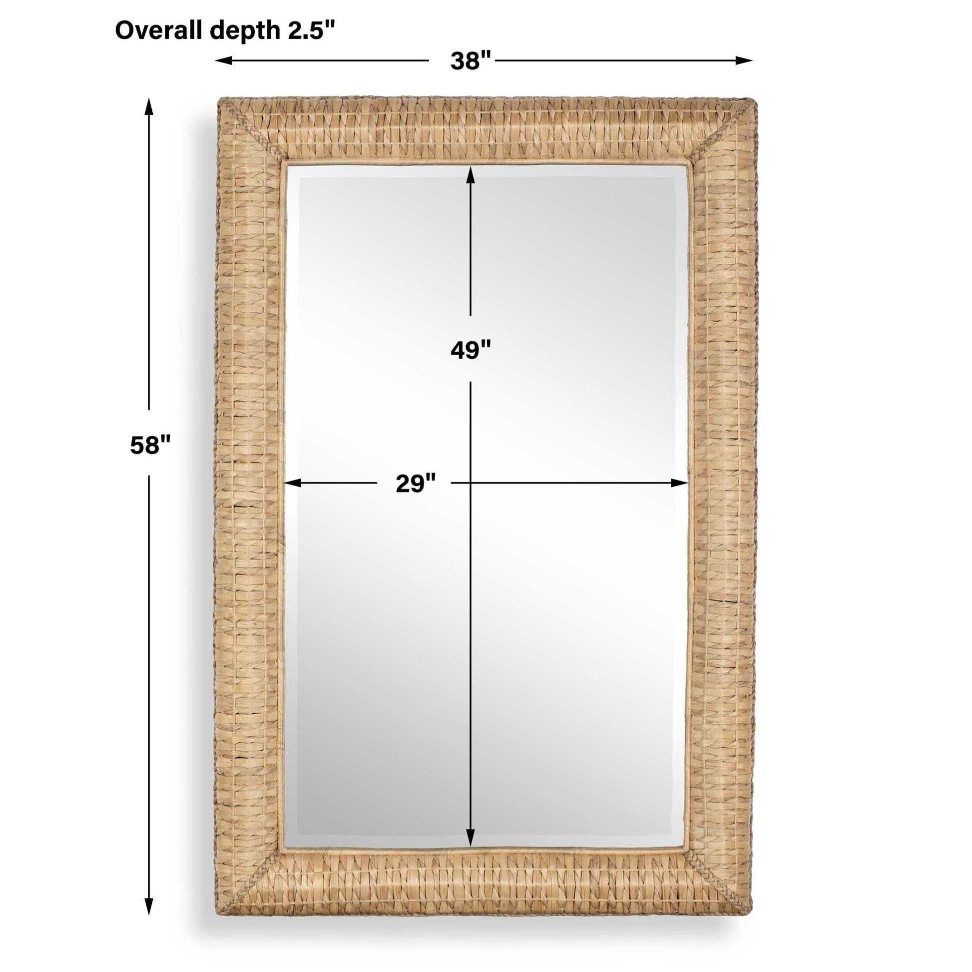 This Rectangle Mirror Boasts A Coastal Vibe By Using Alternating Twisted Natural Seagrass Over A Rounded Frame Accented With Matching Tightly Twisted Edge Banding. Mirror Has A Generous Bevel. May Be Hung Horizontal Or Vertical.