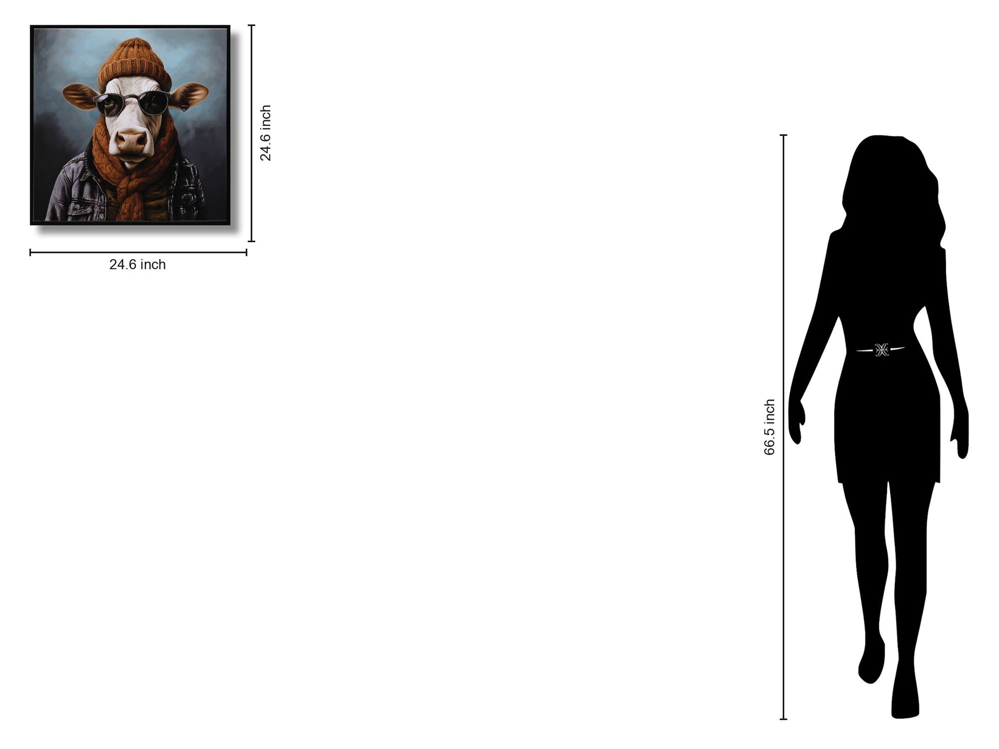 This captivating "Hipster Cool Cow Portrait" brings a playful and stylish charm to any space. Featuring a cow adorned with a cozy knit hat, scarf, and sleek sunglasses, this graphic art piece combines humor and contemporary flair. Printed on high-quality gloss canvas and framed in a sleek black polystyrene frame, it offers a vibrant, glossy finish that enhances every detail. Perfect for living rooms, bedrooms, or offices, this hand-embellished artwork arrives ready to hang, instantly adding personality and a touch of whimsy to your decor.